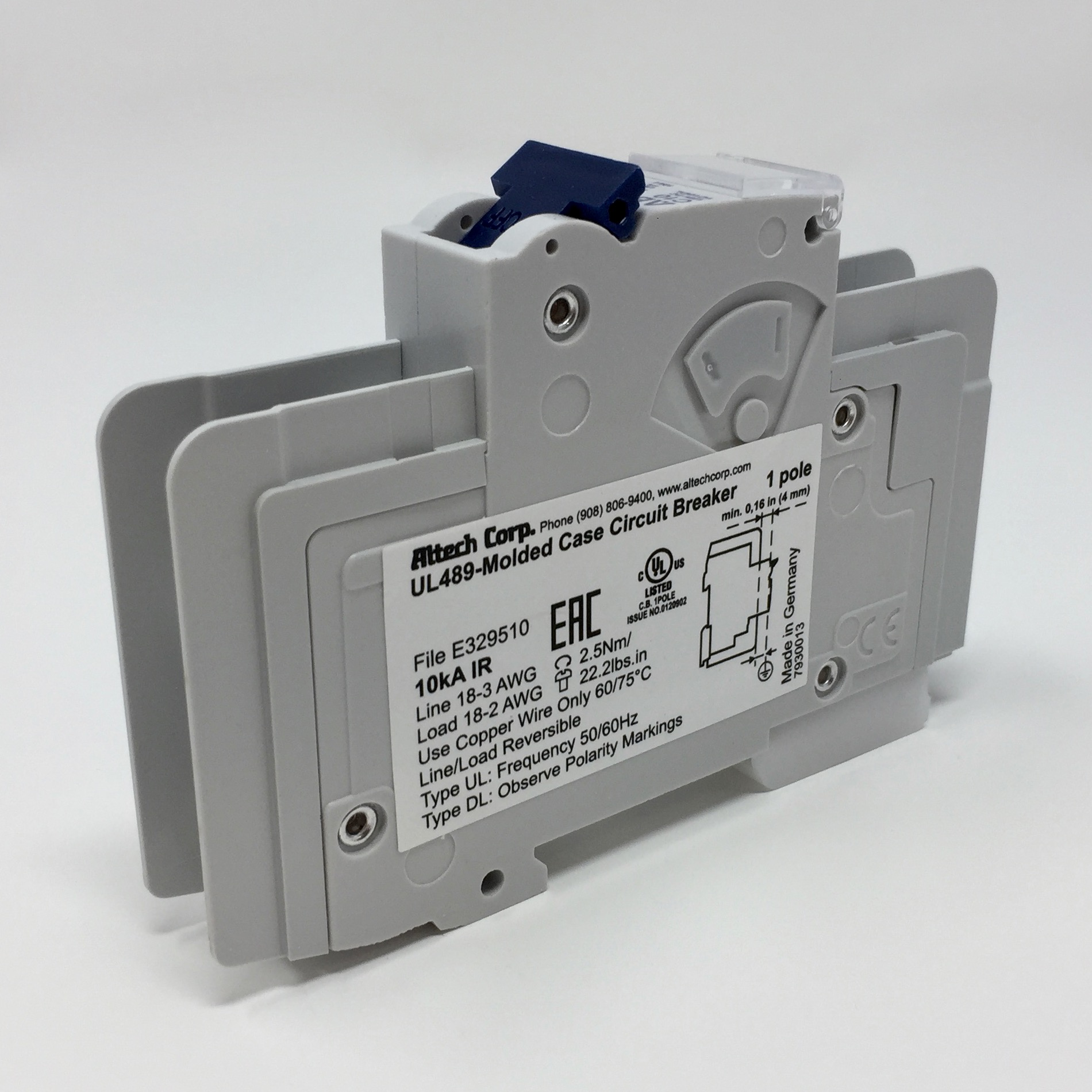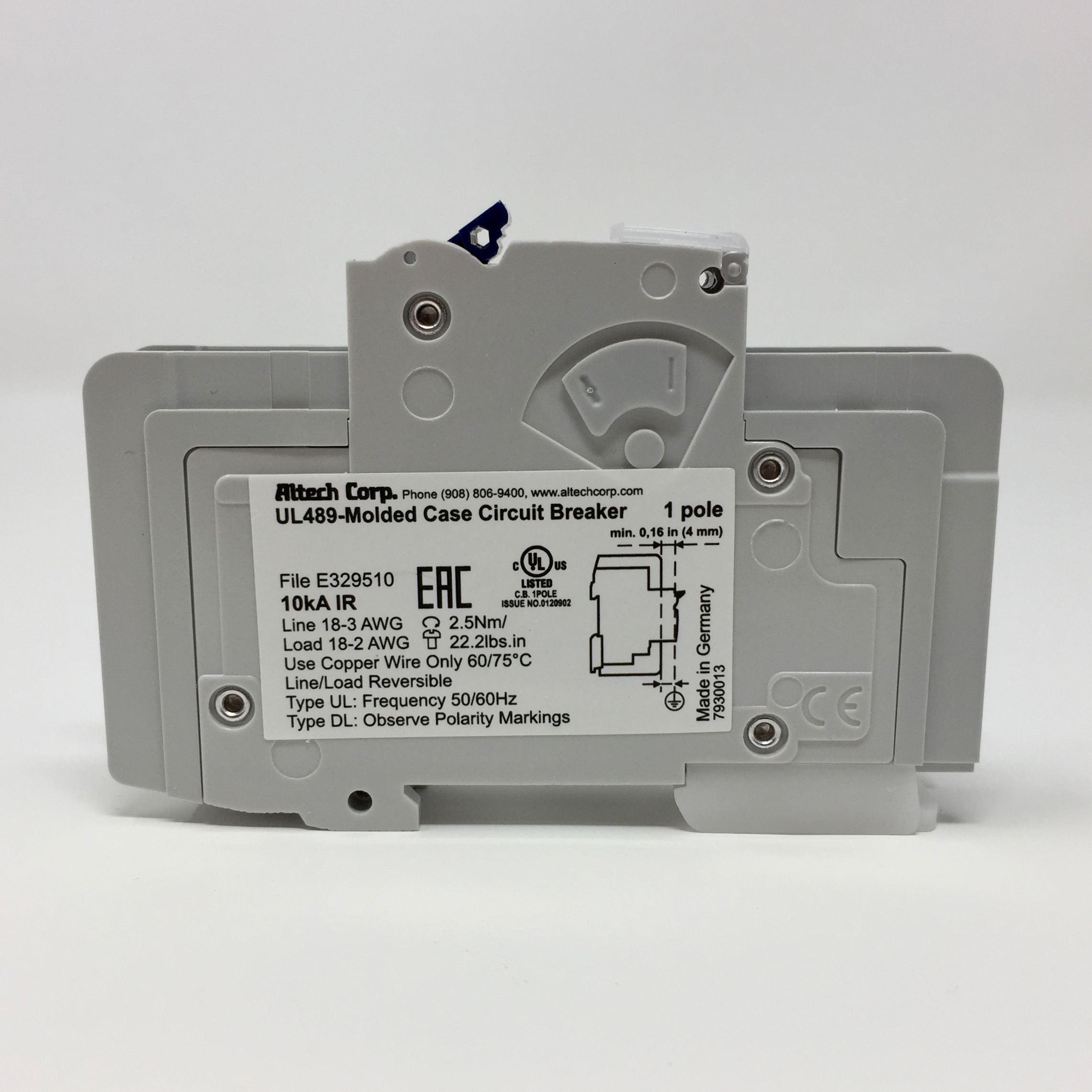 Altech UL489 Din Rail Miniature DC 1 Pole Circuit Breaker. Rated at 10 Amps with a C Trip Curve