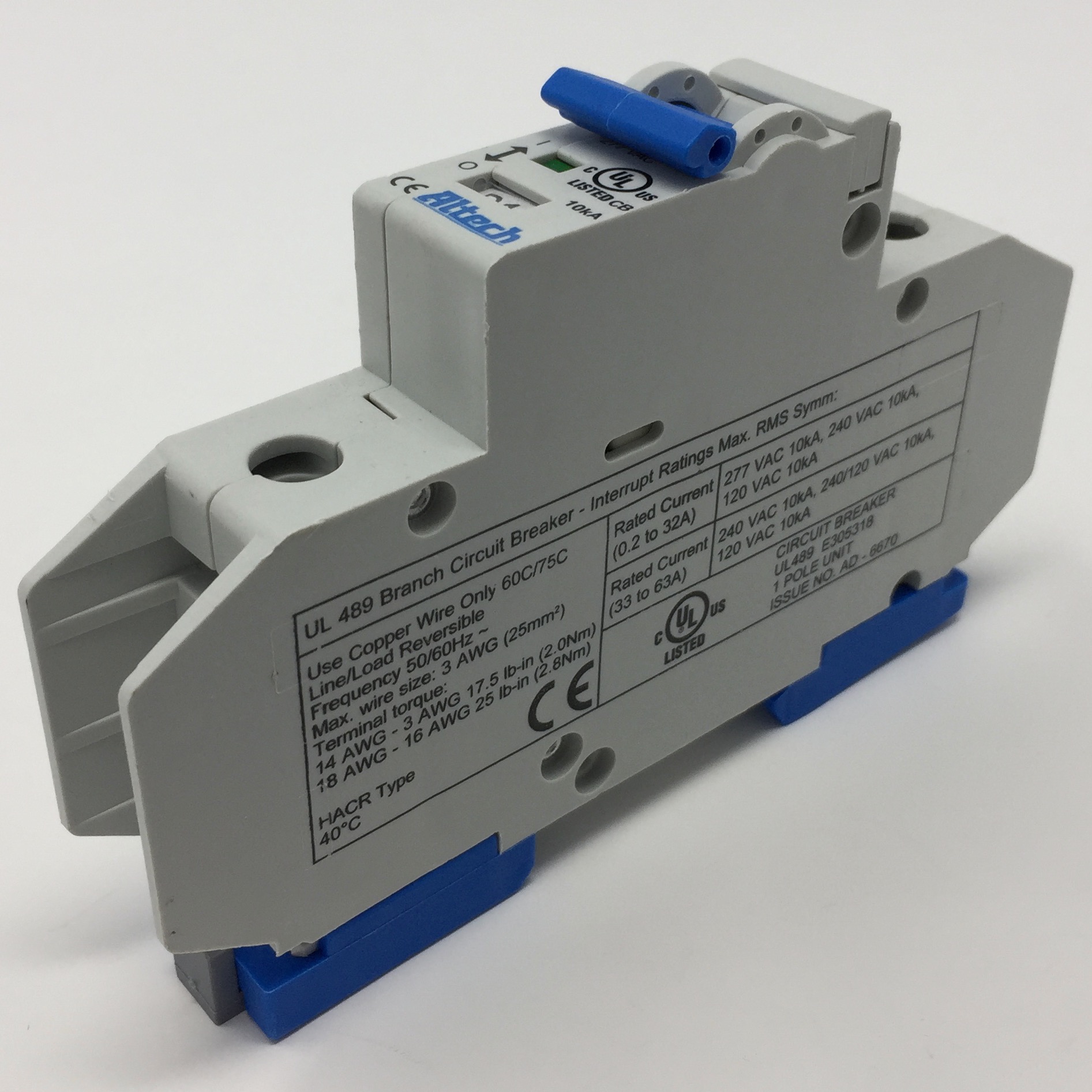 Altech UL489 Din Rail Miniature AC 1 Pole Circuit Breaker. Rated at 15 Amps with a D Trip Curve