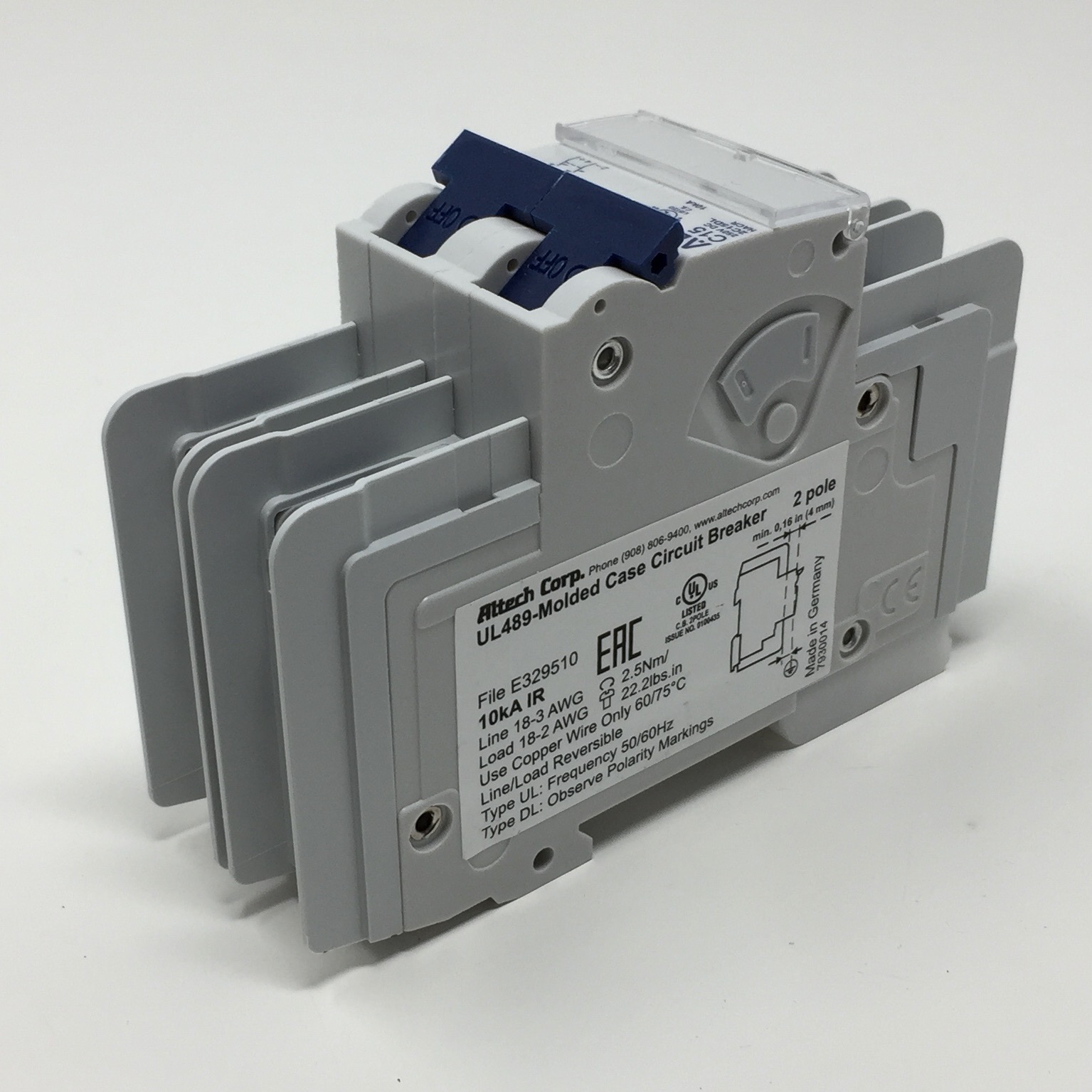 Altech UL489 Din Rail Miniature DC 2 Pole Circuit Breaker. Rated at 15 Amps with a C Trip Curve