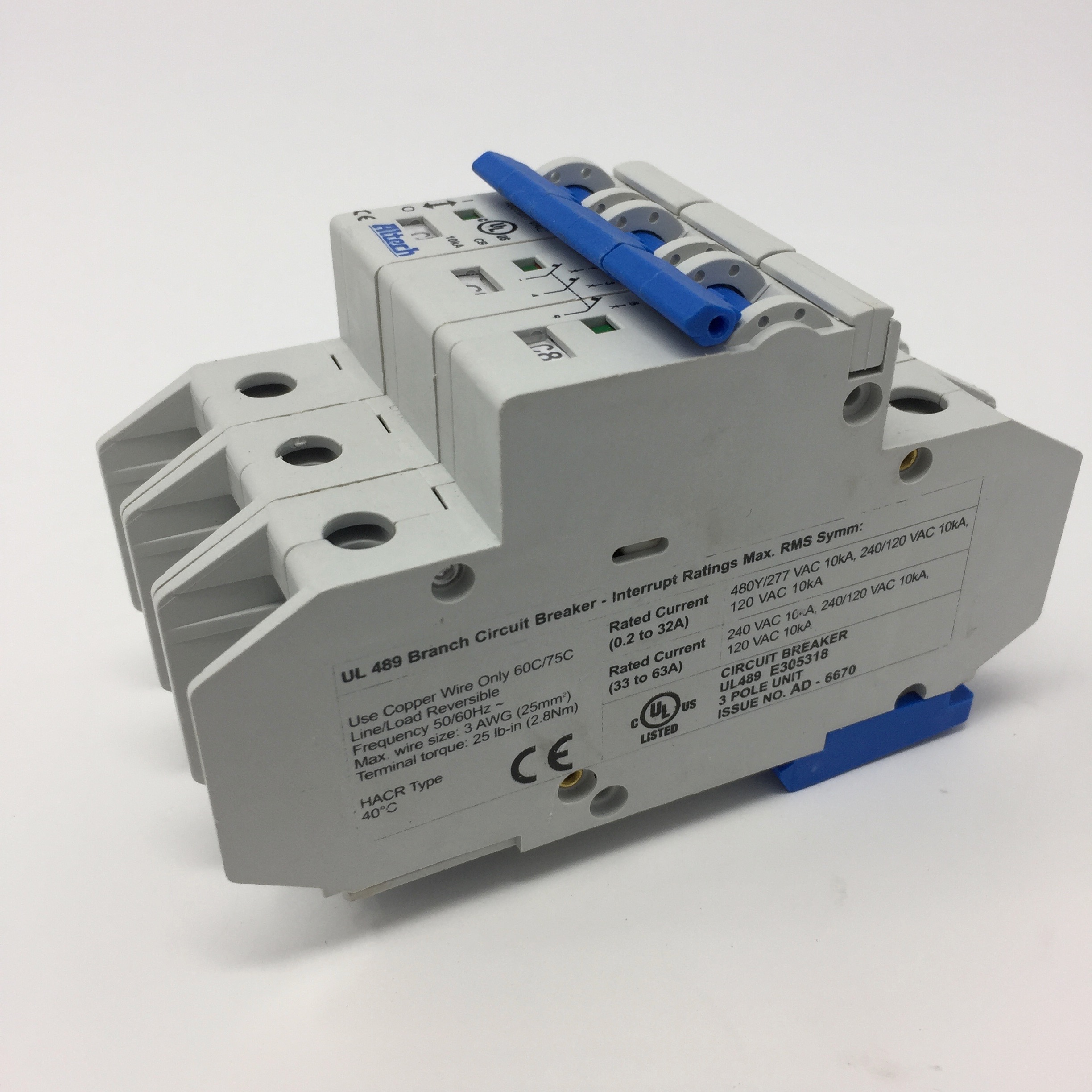 Altech UL489 Din Rail Miniature AC 3 Pole Circuit Breaker. Rated at 8.0 Amps with a C Trip Curve
