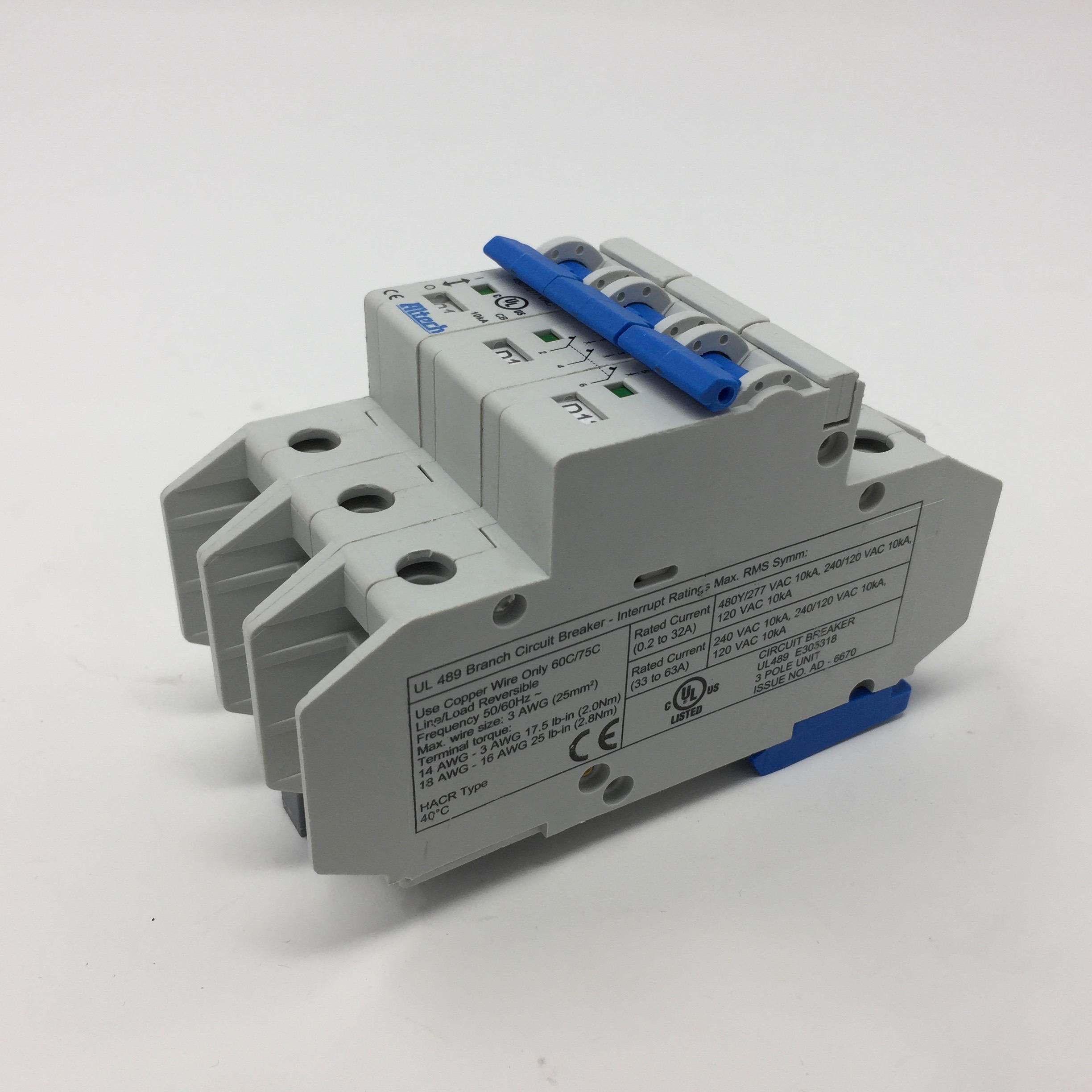 Altech UL489 Din Rail Miniature AC 3 Pole Circuit Breaker. Rated at 12 Amps with a D Trip Curve