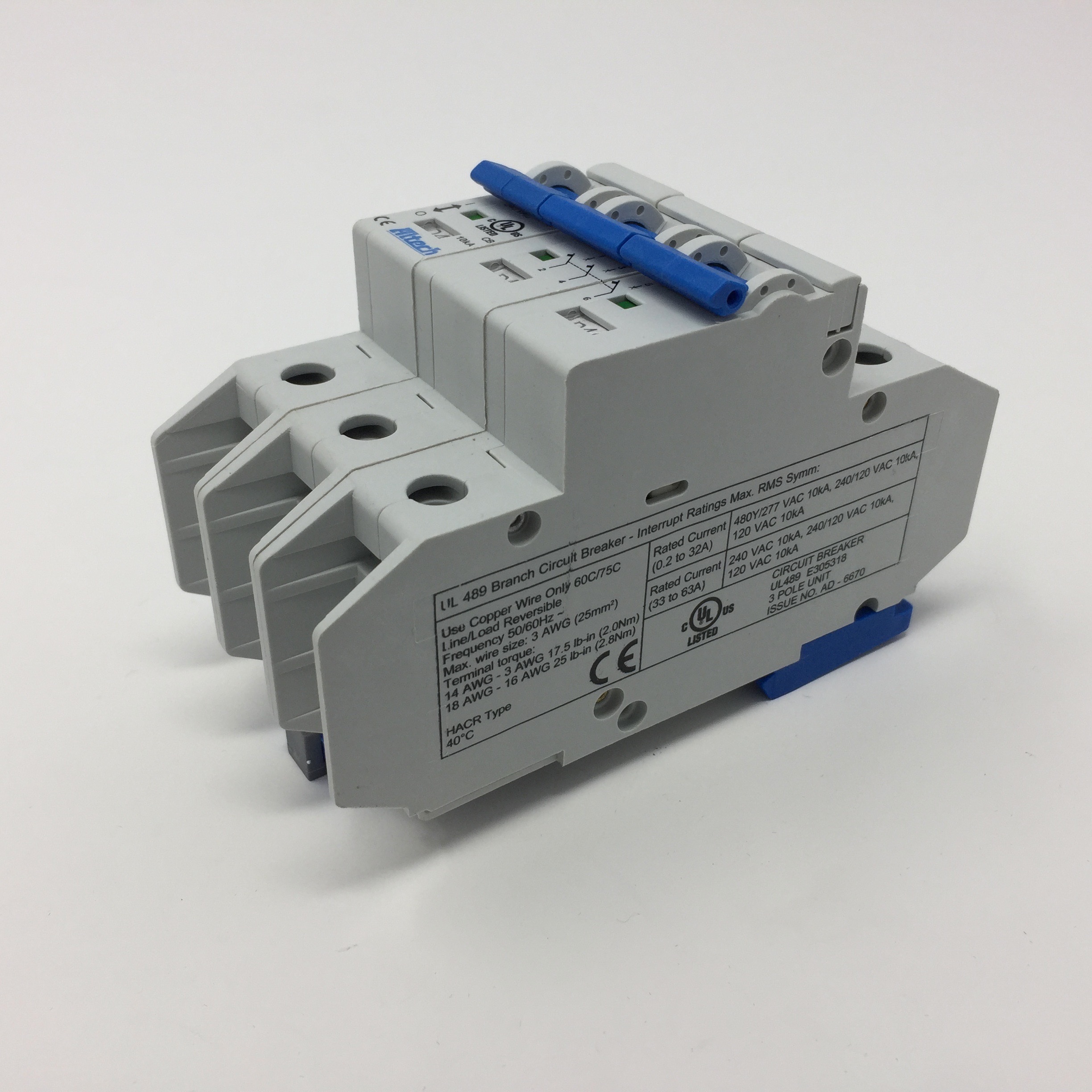 Altech UL489 Din Rail Miniature AC 3 Pole Circuit Breaker. Rated at 40 Amps with a D Trip Curve