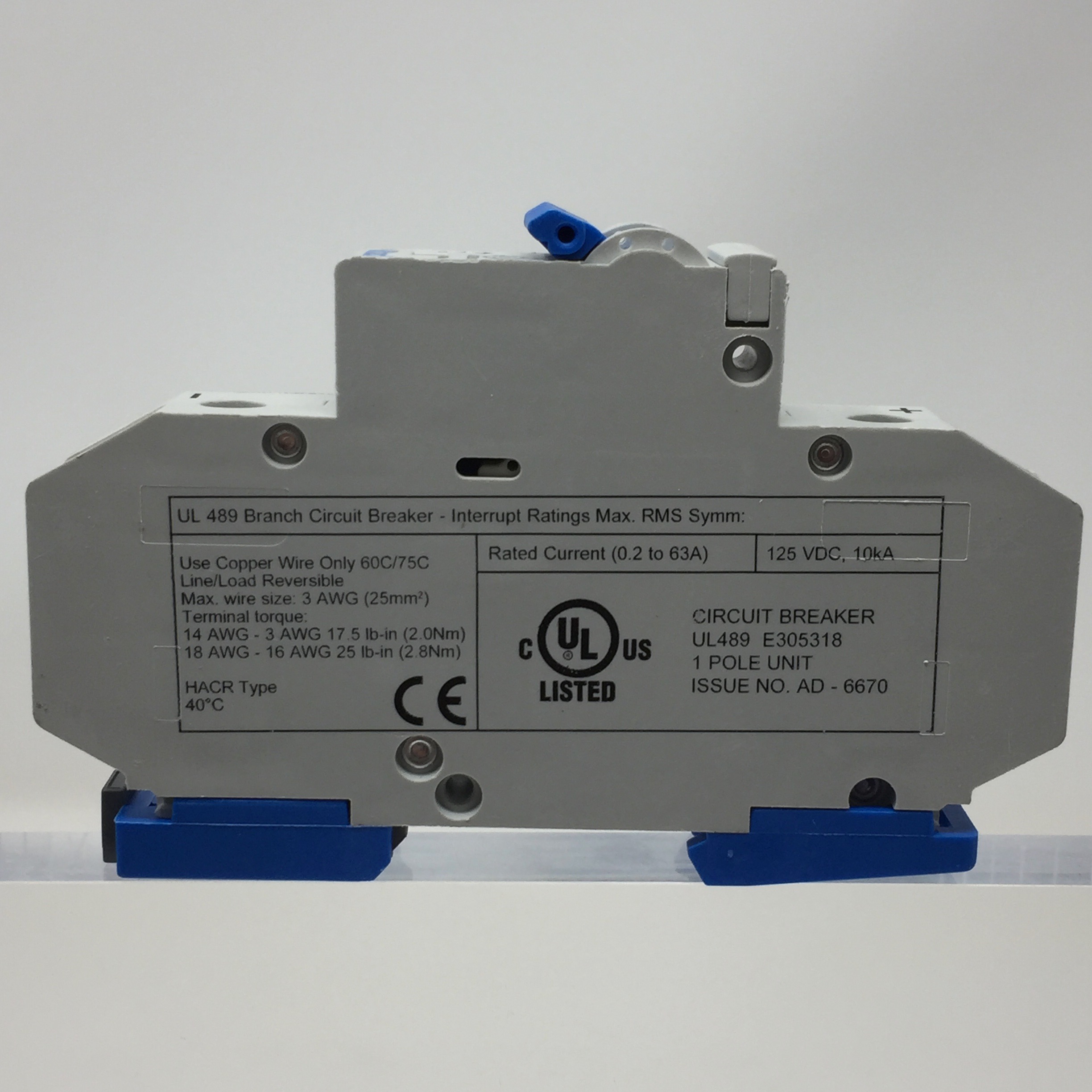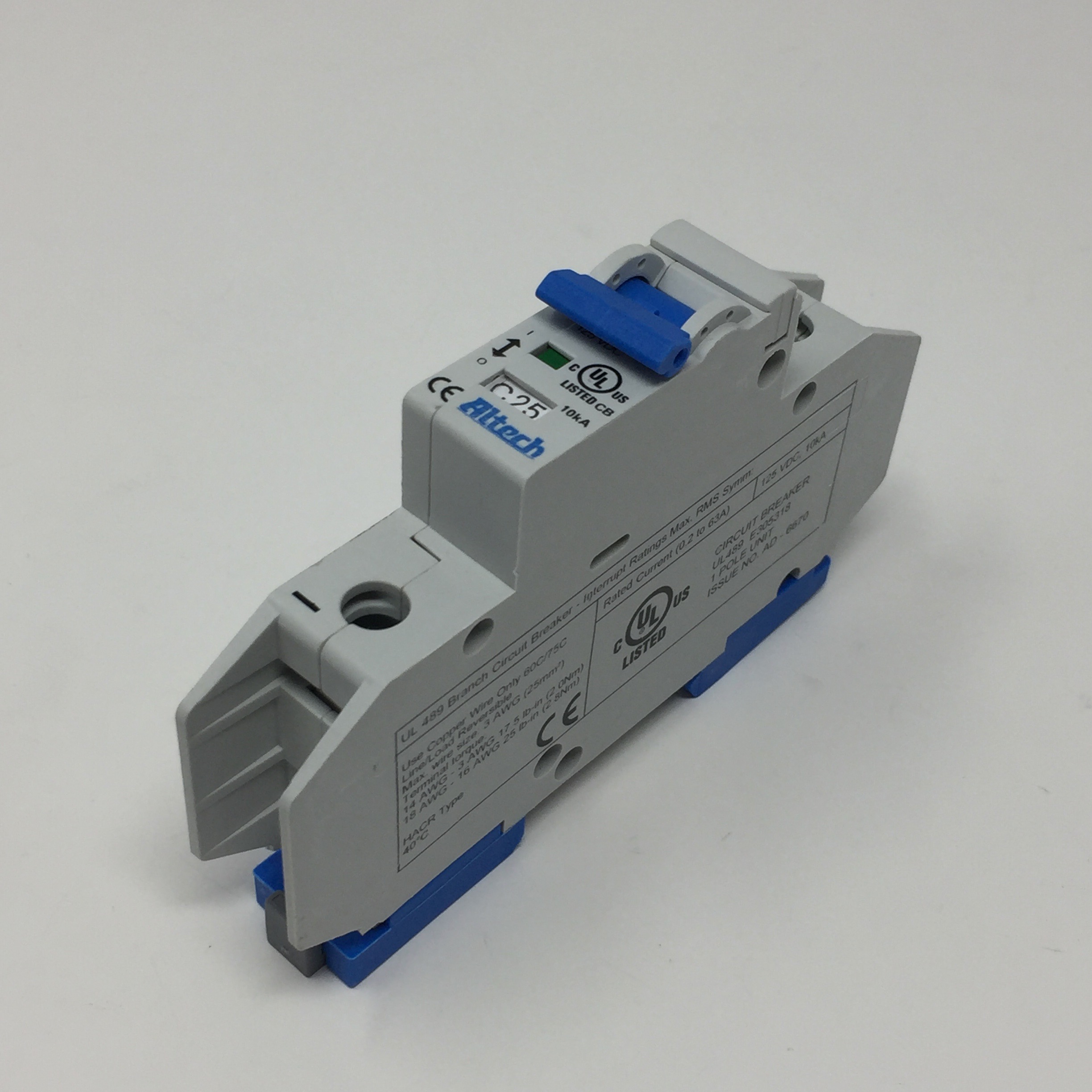 Altech UL489 Din Rail Miniature DC 1 Pole Circuit Breaker. Rated at 25 Amps with a C Trip Curve
