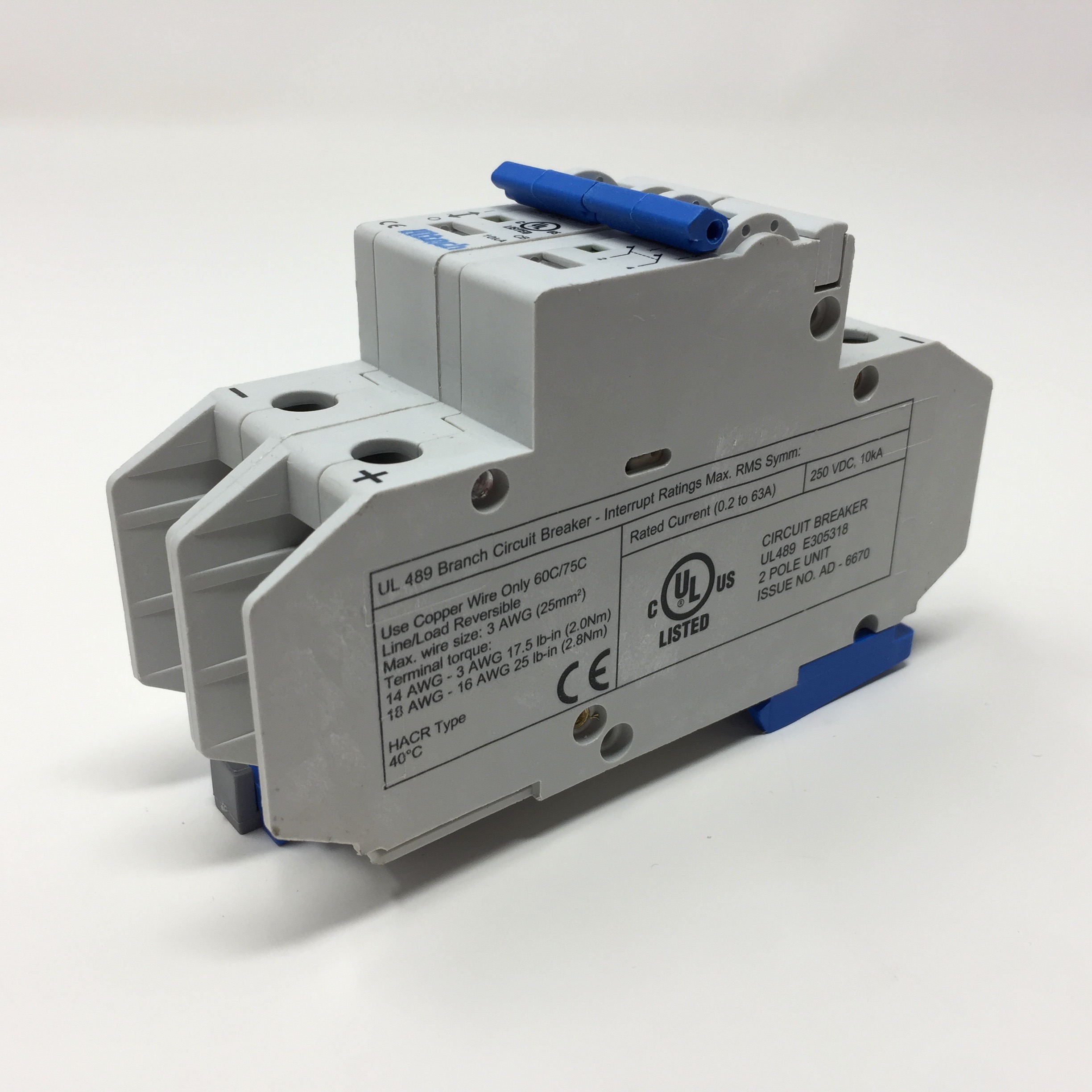 Altech UL489 Din Rail Miniature DC 2 Pole Circuit Breaker. Rated at 15 Amps with a D Trip Curve