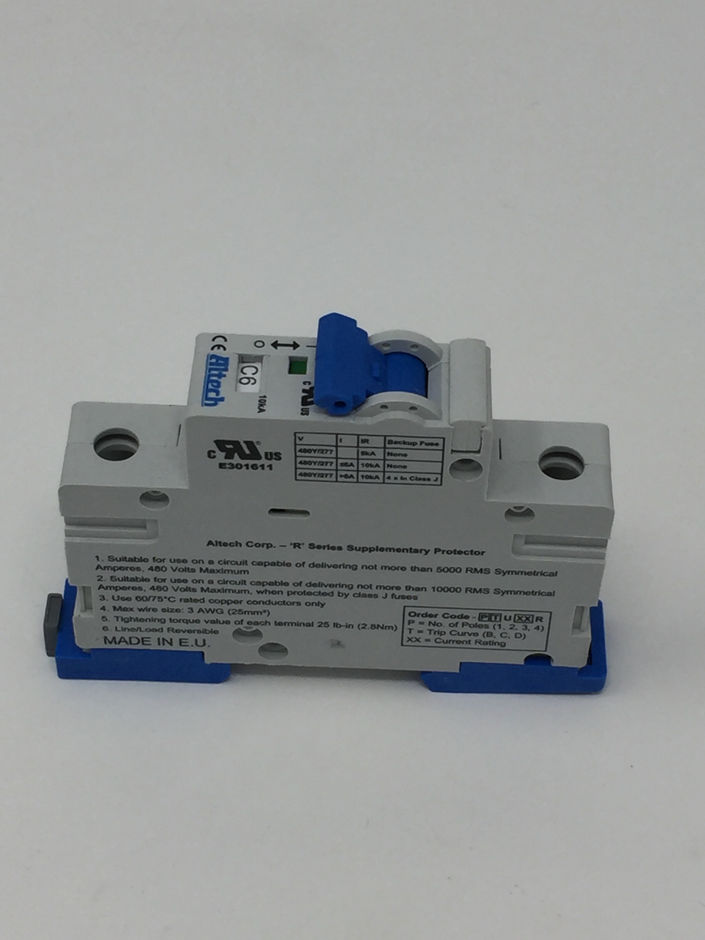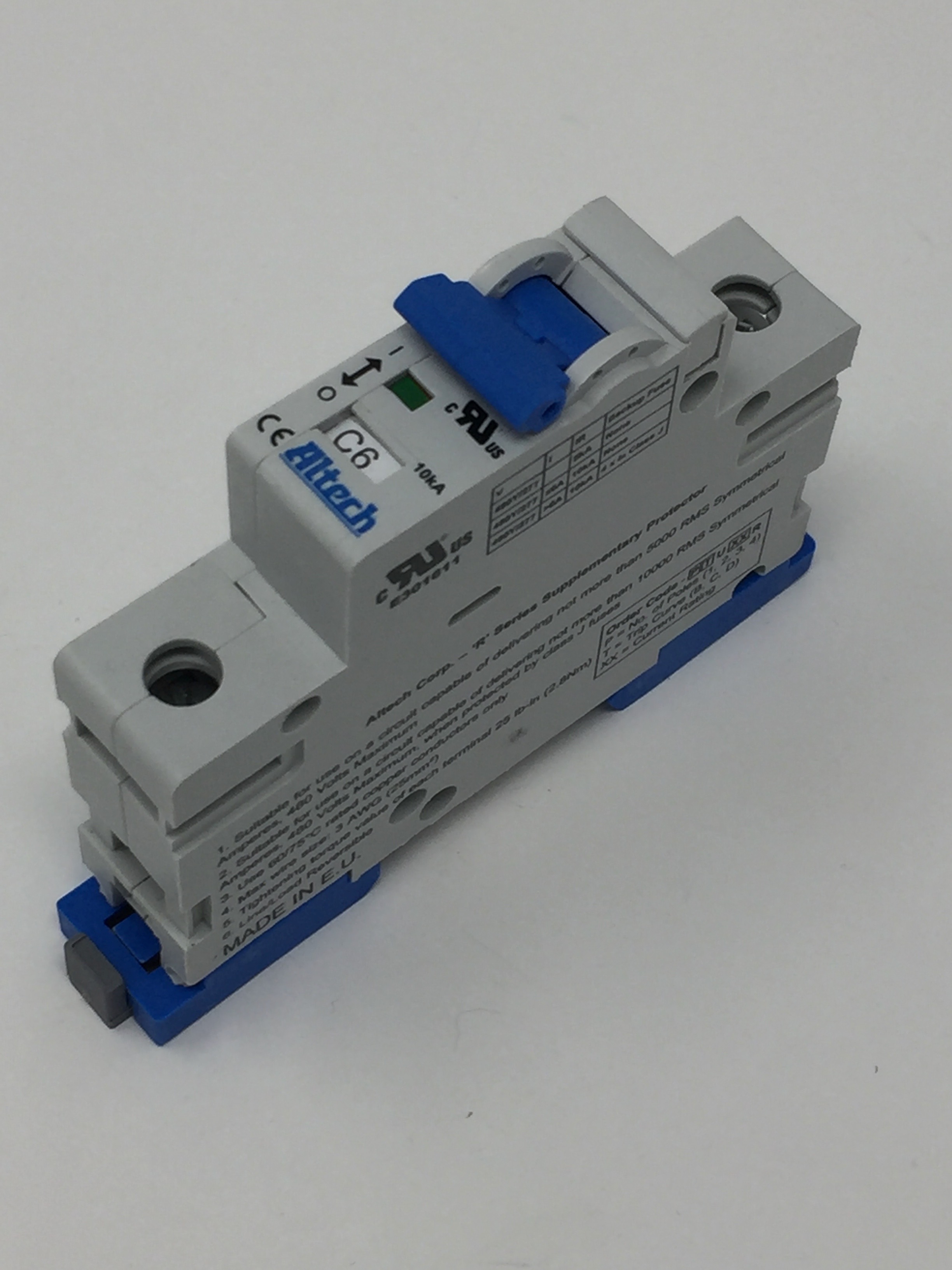 Altech UL1077 Din Rail Miniature 1 Pole Circuit Breaker Rated at 6.0 Amps with a C Trip Curve
