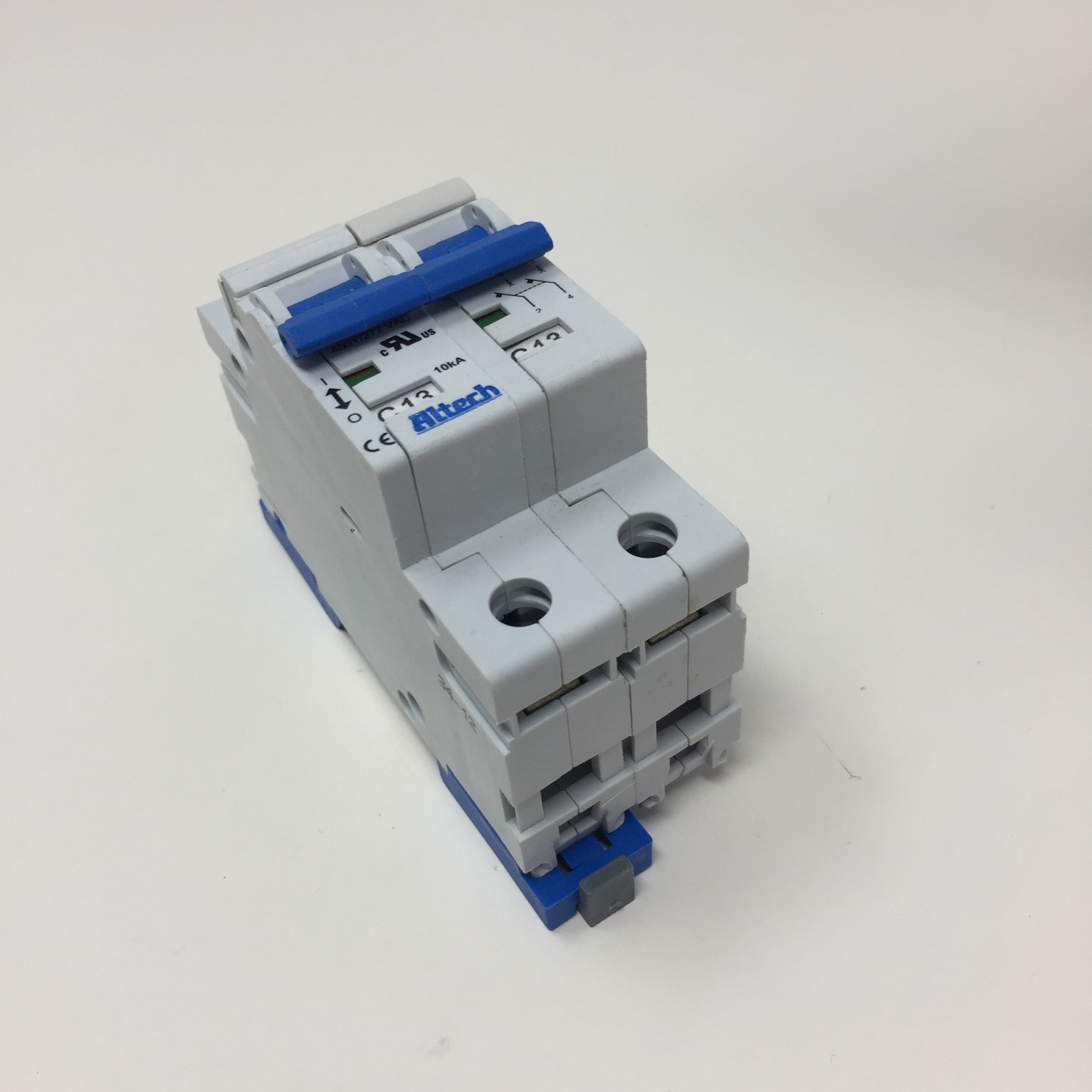 Altech UL1077 Din Rail Miniature 2 Pole Circuit Breaker Rated at 13 Amps with a C Trip Curve