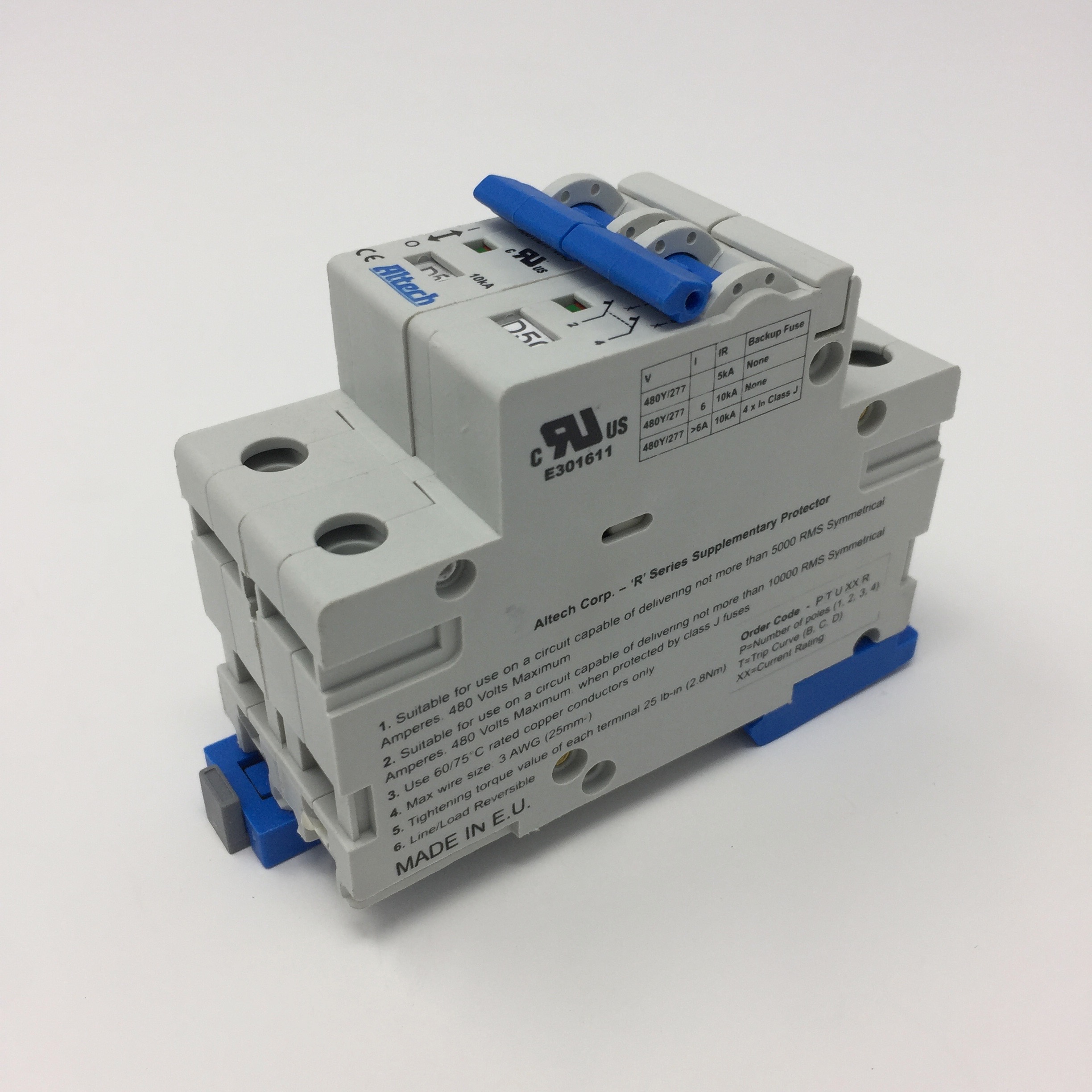 Altech UL1077 Din Rail Miniature 2 Pole Circuit Breaker Rated at 50 Amps with a D Trip Curve