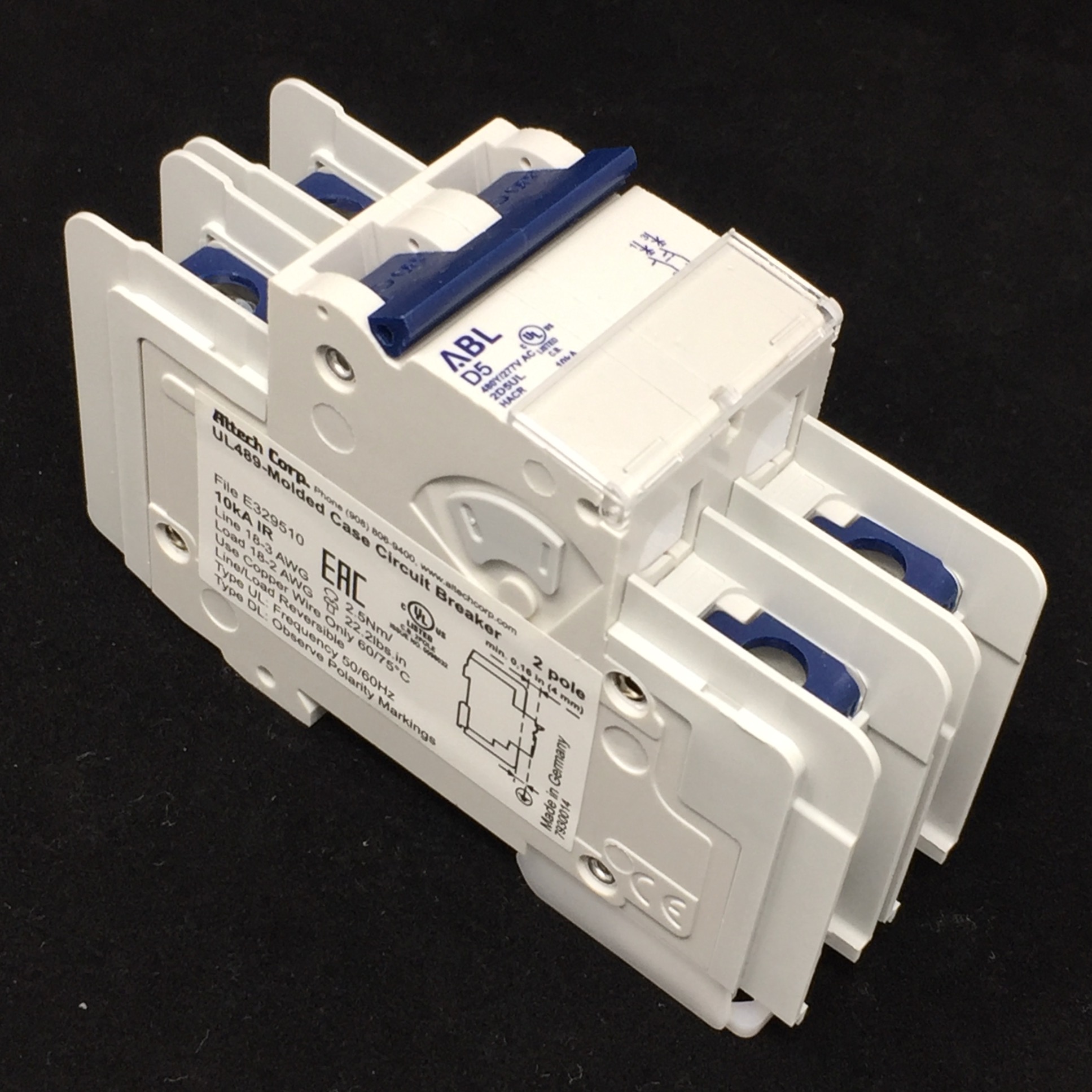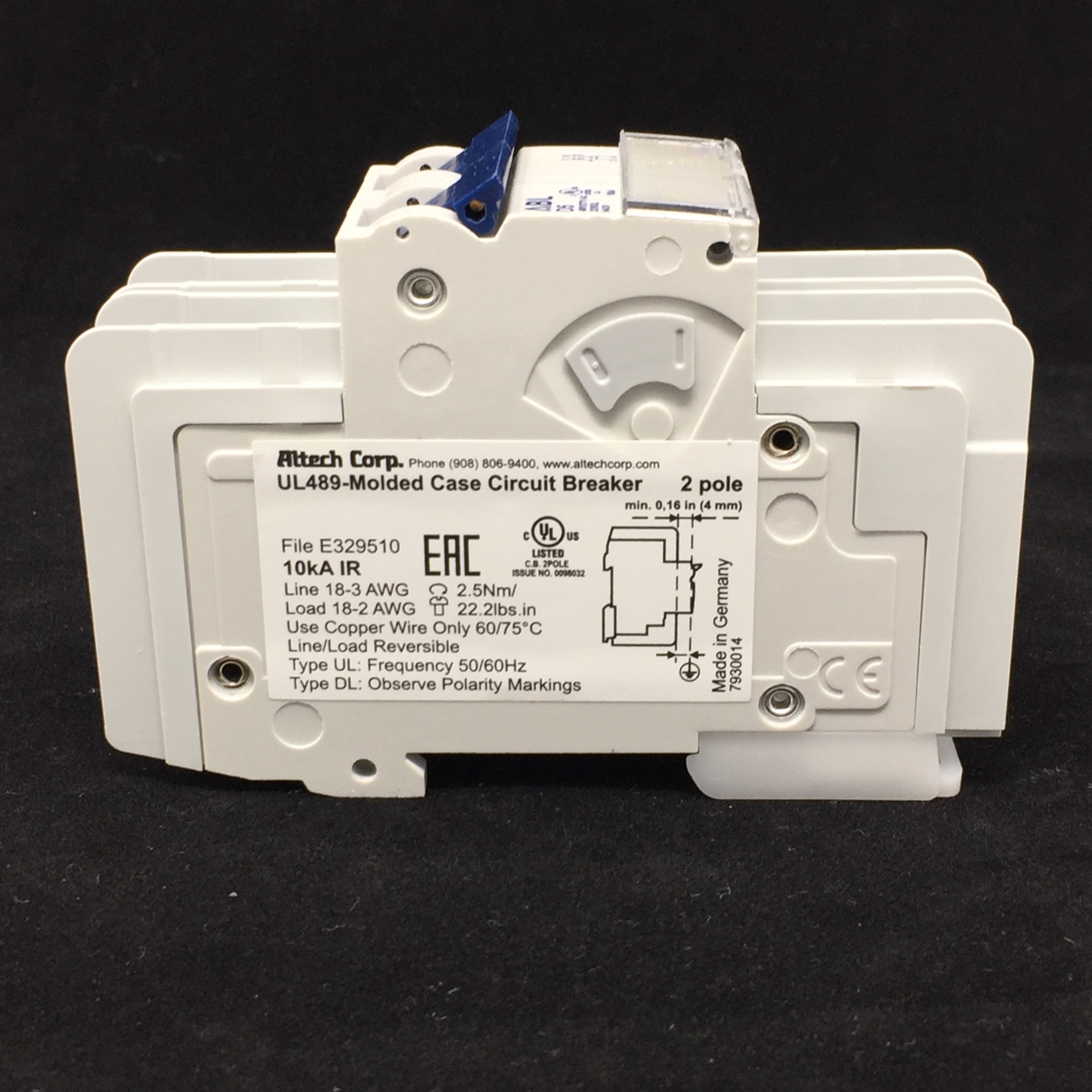 Altech UL489 Din Rail Miniature AC 2 Pole Circuit Breaker. Rated at 5.0 Amps with a D Trip Curve