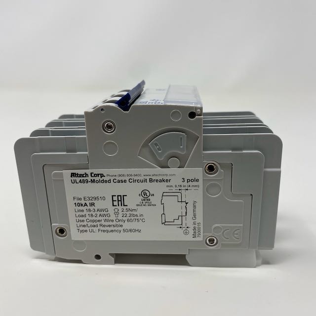 Altech UL489 Din Rail Miniature AC 3 Pole Circuit Breaker. Rated at 32 Amps with a C Trip Curve
