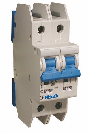 Altech UL489 Din Rail Miniature AC 2 Pole Circuit Breaker. Rated at 10 Amps with a D Trip Curve