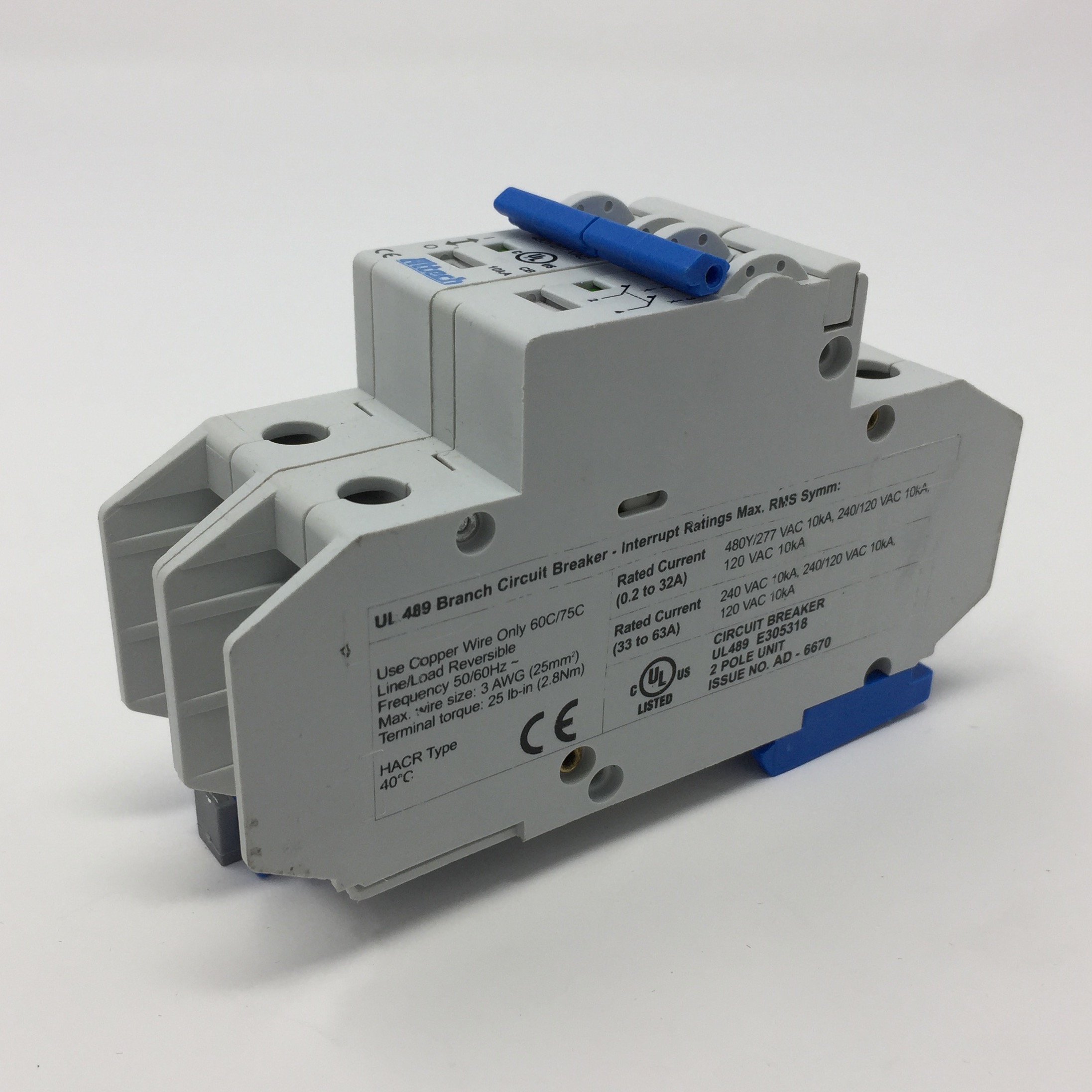 Altech UL489 Din Rail Miniature AC 2 Pole Circuit Breaker. Rated at 30 Amps with a D Trip Curve