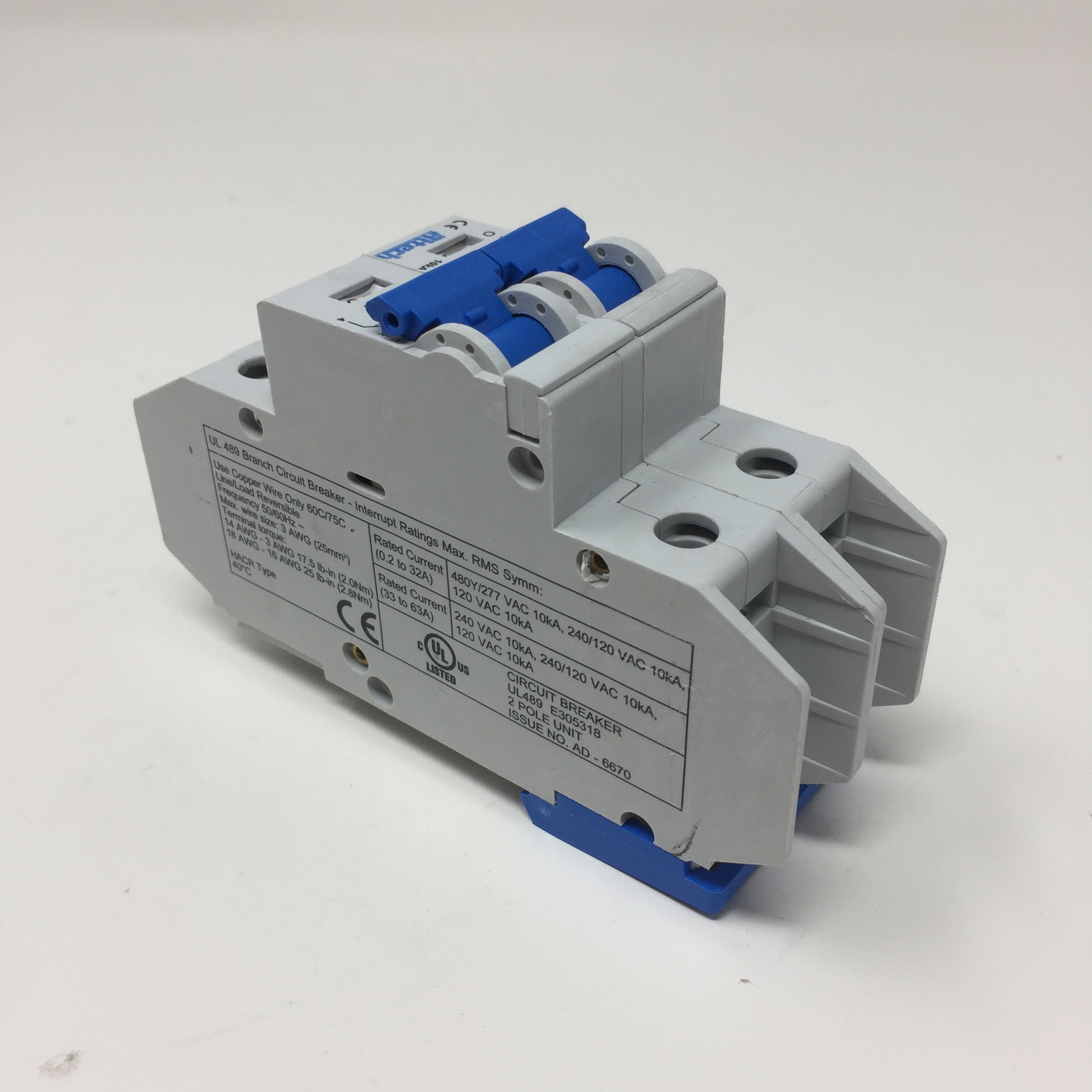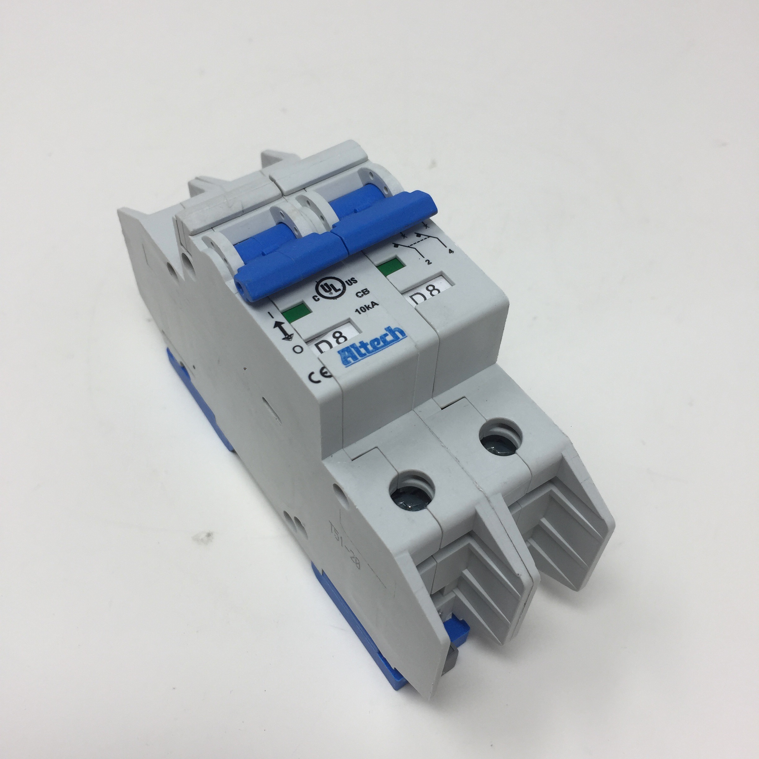 Altech UL489 Din Rail Miniature AC 2 Pole Circuit Breaker. Rated at 8.0 Amps with a D Trip Curve