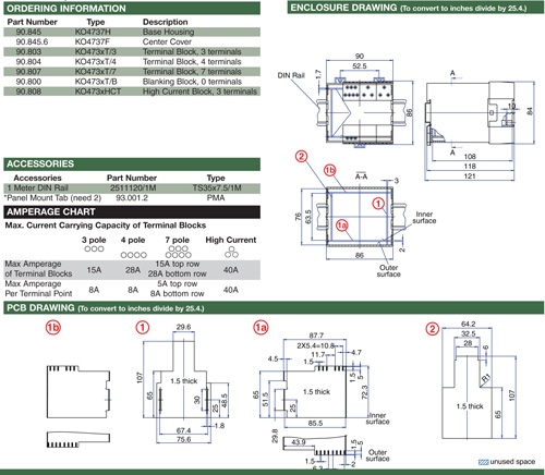 40 Terminal Maximum, with 12 High Current Terminals, Pluggable Card Edge, Connection/ Solder Connection, Base Housing, 35mm DIN Rail or optional panel mounting*
