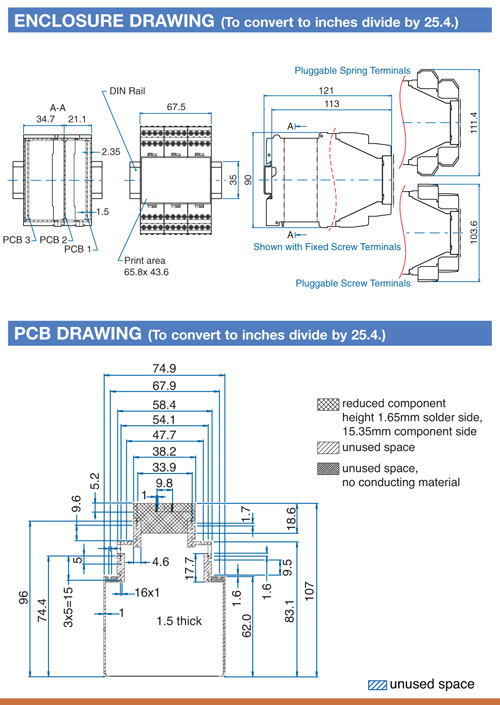 48 Terminal, Tall Vertical PCB, Pluggable Screw, 35 mm DIN Rail