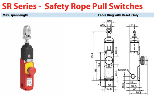 Altech SR-Series - Safety Rope Pull Switches, Cable Ring with Reset Only, 4 NC With [Type No. - SR-A4Z-0-LU-175-L0-0-0] and [Approvals - CSA, BG].