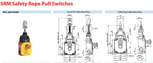 Altech SRM Safety Rope Pull Switches, Quick Fix Cable Mounting, 2 NC / 2 NO With [Type No. - SRM-U1Z/U1Z-QF-300] and [Maximum Switching Voltage - 240V] and [Maximum Switching Amperage - 10A].