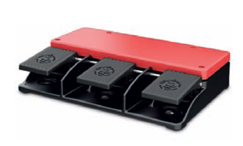 Altech Triple Pedal; STANDARD WITHOUT COVER. Standard OFF-ON Operation- Push pedal to change contact state. Release pedal to return to original state. Slow-action contact. With [Switching contacts Pedal 1 (left) - 1NC/2NO] and [Switching contacts Pedal 2 (middle) - 1NC/1NO] and [Switching contacts Pedal 3 (right) - 1NC/1NO].