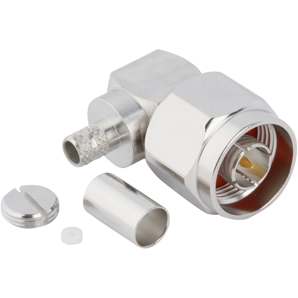 Amphenol RF - RF Connector N-Type Right Angle Crimp Plug RG-8X Times LMR-240 Optimized 50 Ohm Part Number: 172385 -->> Connectors > N-Type Connectors