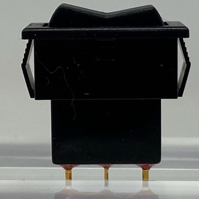 Snap-in On-Off-On Rocker Switch Brass, Gold Plated PC Thru-Hole Terminals and Black Actuator