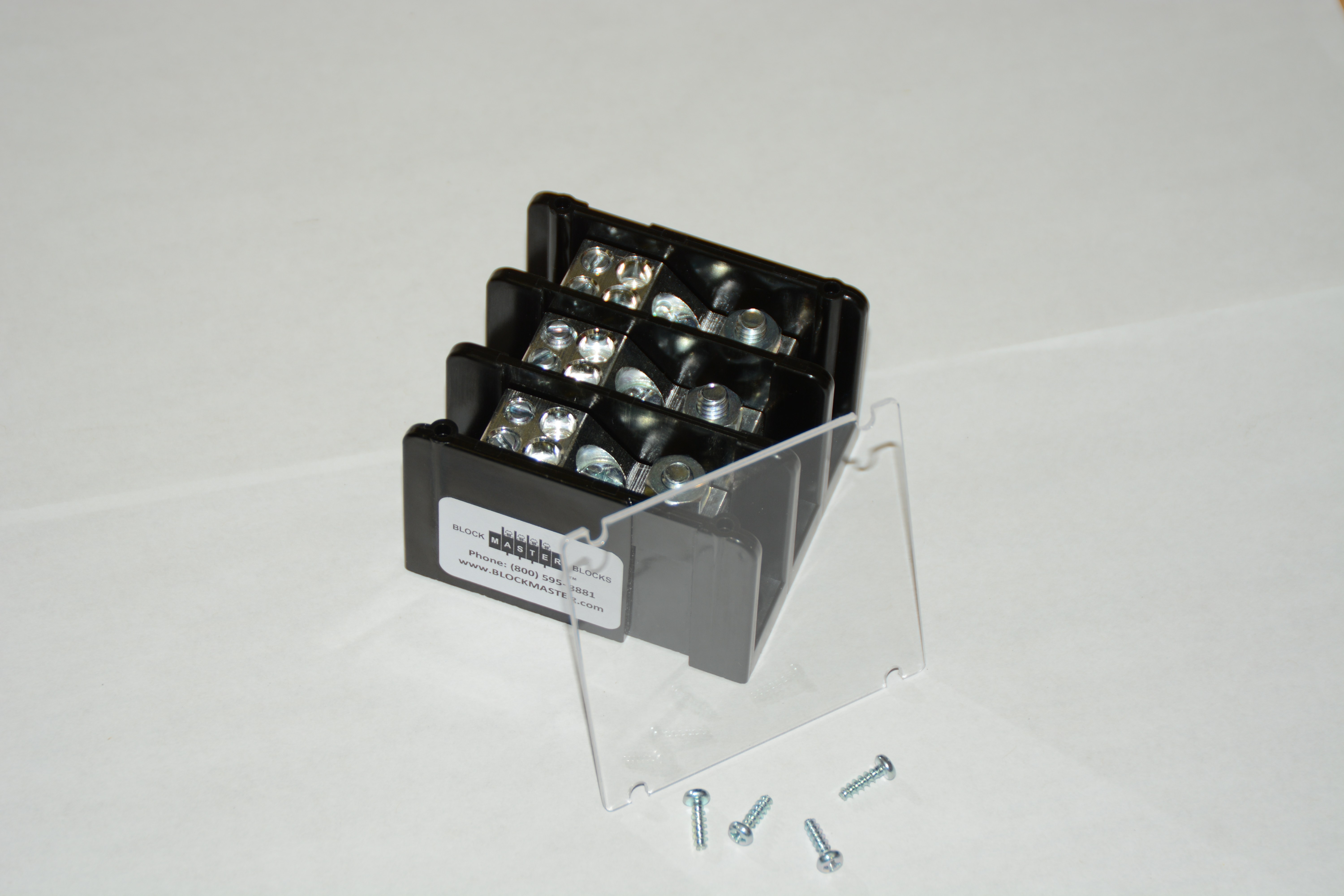 Blockmaster 3 Pole, Stud to Screws (4) with Clear Cover 600 Volts 175 Amps Power Distribution Block