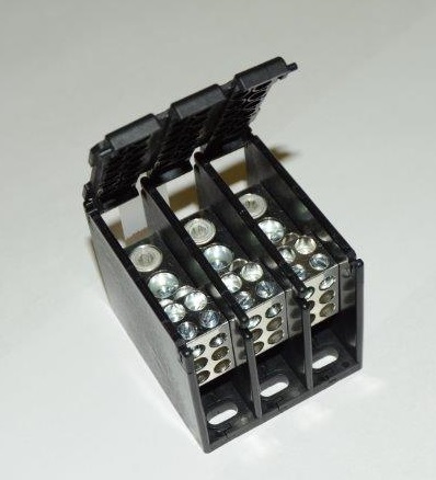 Blockmaster 3 Pole, Screw Clamp to Screws (6) with Hinged Black Cover 600 Volts 175 Amps Power Distribution Block