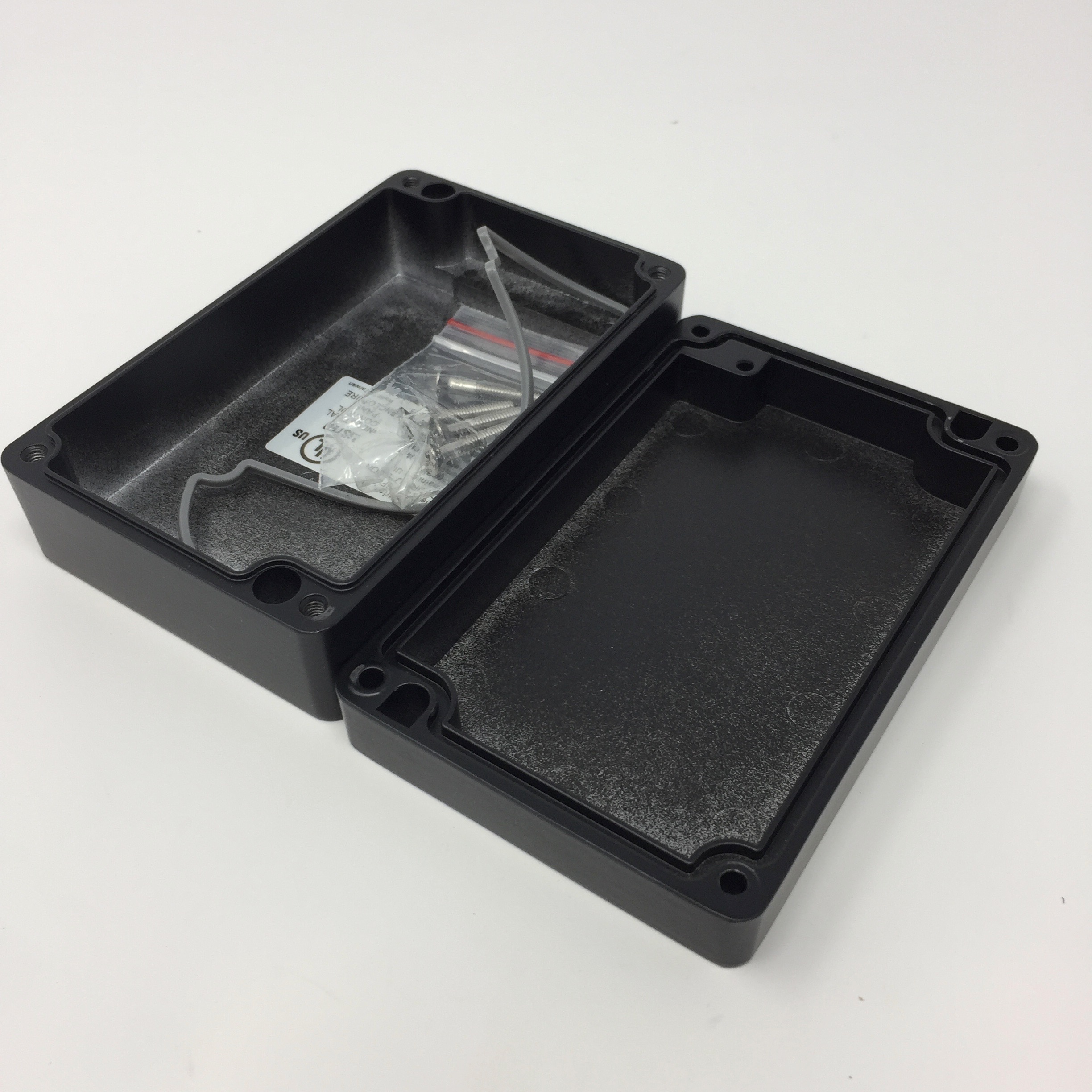 BUD 4.90" x 3.14" x 1.59" Aluminum Die Cast Standard Box in Black Smooth Powder Coat with premolded silicon gasket.