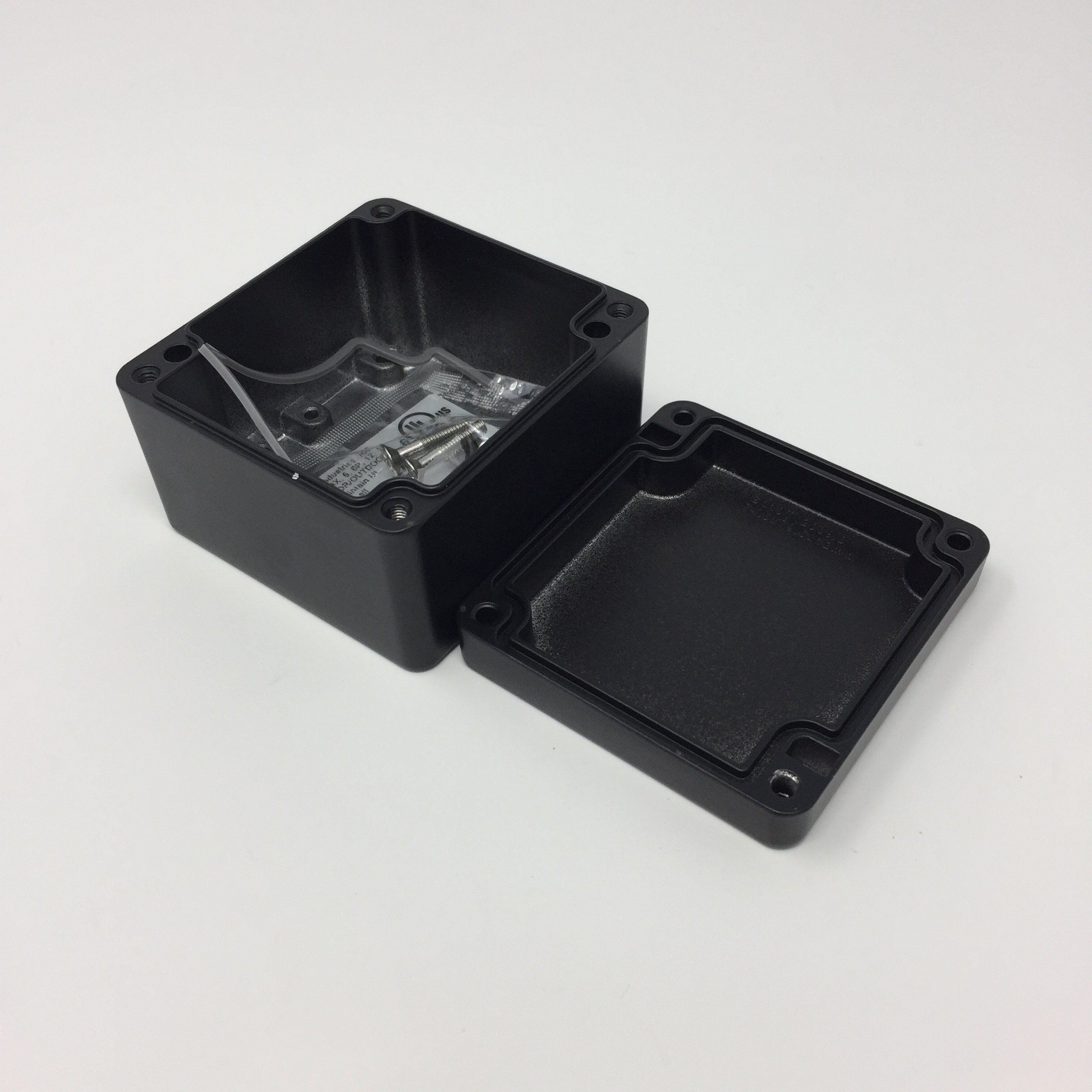 BUD 3.13 x 2.93 x 2.05 Aluminum IP68 Diecast Enclosure with Powder coated Black Finish. NEMA/UL TYPE 4X, 6, 6P, 12, 13