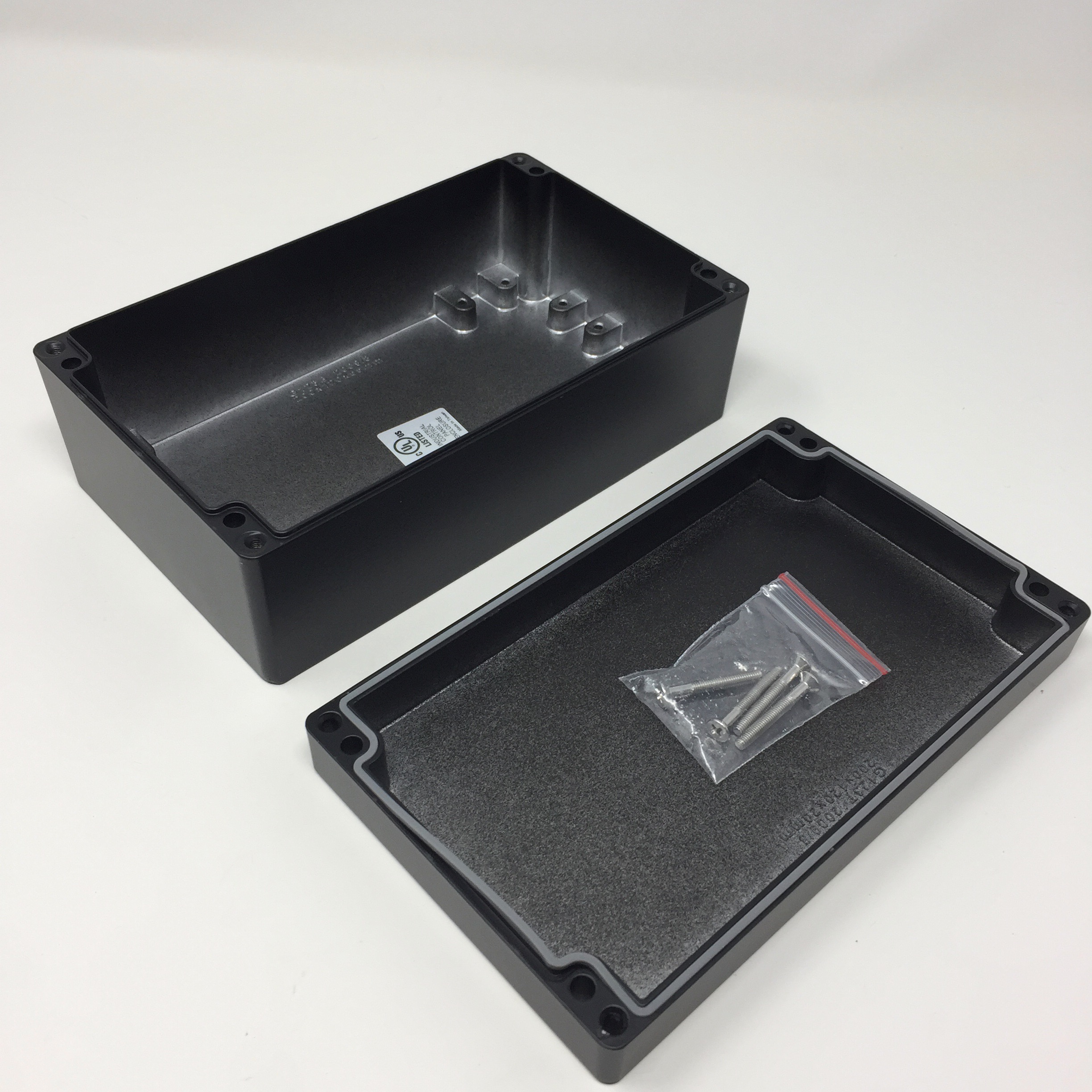BUD 7.87 x 4.72 x 2.95 Aluminum IP68 Diecast Enclosure with Powder coated Black Finish. NEMA/UL TYPE 4X, 6, 6P, 12, 13