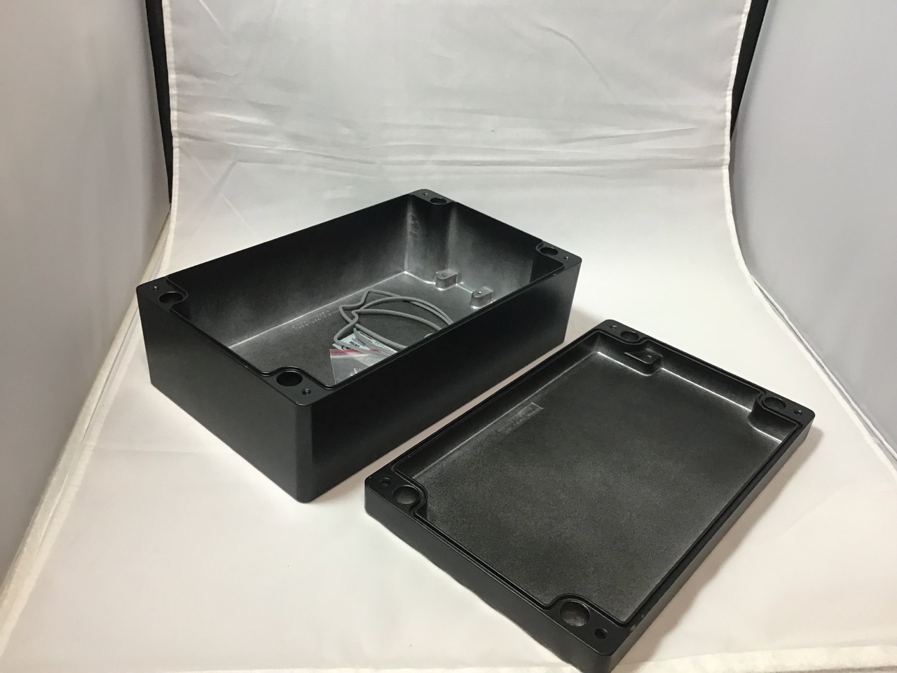 BUD 10.24 x 6.30 x 3.56 Aluminum IP68 Diecast Enclosure with Powder coated Black Finish. NEMA/UL TYPE 4X, 6, 6P, 12, 13