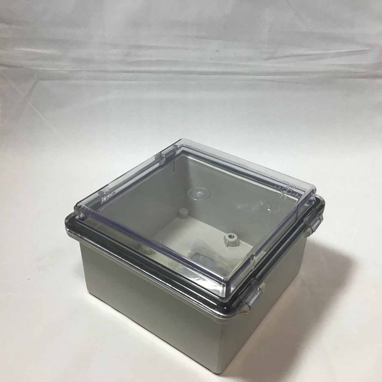 IP66 BUD 5.90x5.90x3.57 LxWxD (In) Light Gray UL508-4X Indoor ABS Clear Door NEMA Enclosure with Mounting Brackets Included
