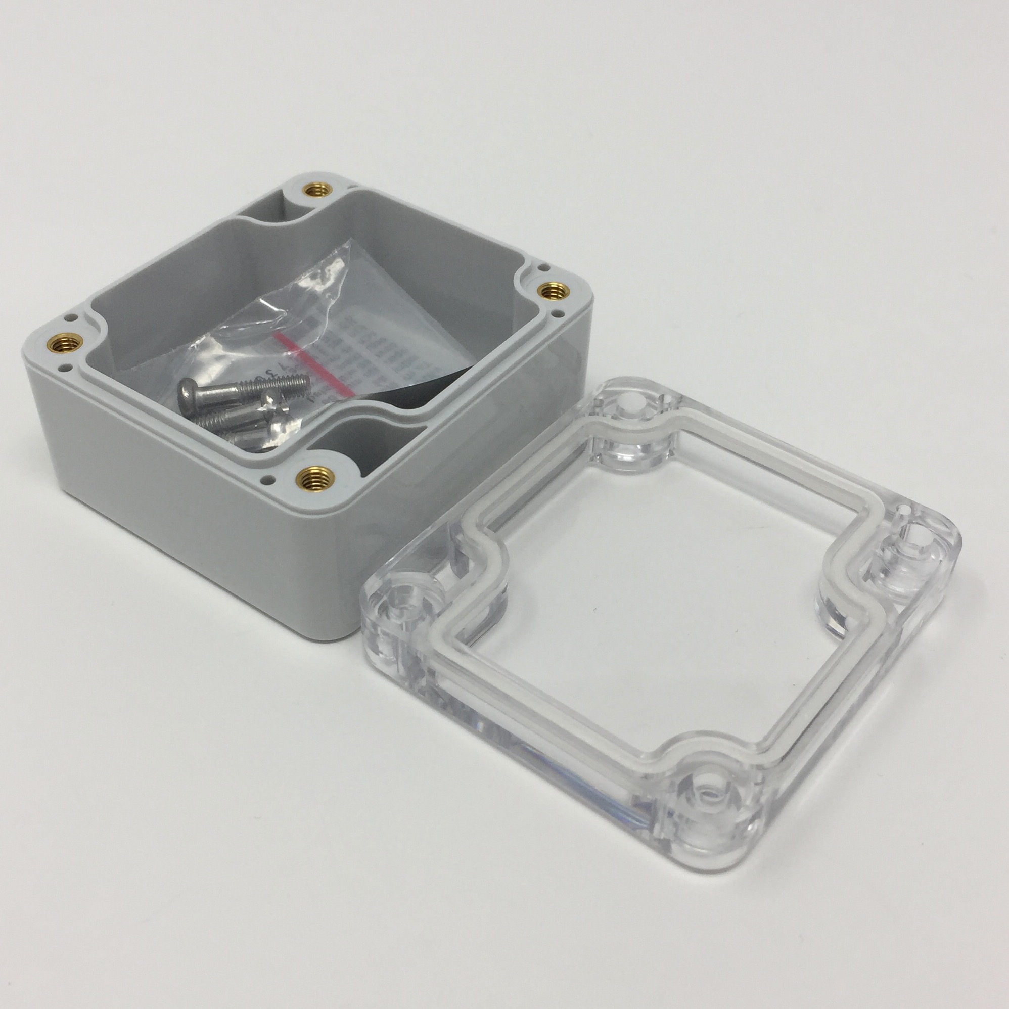 BUD NEMA Polycarbonate 2.28 x 2.04 x 1.18 Inch Internal box with Light Grey body and clear polycarbonate cover and No Mounting Bracket