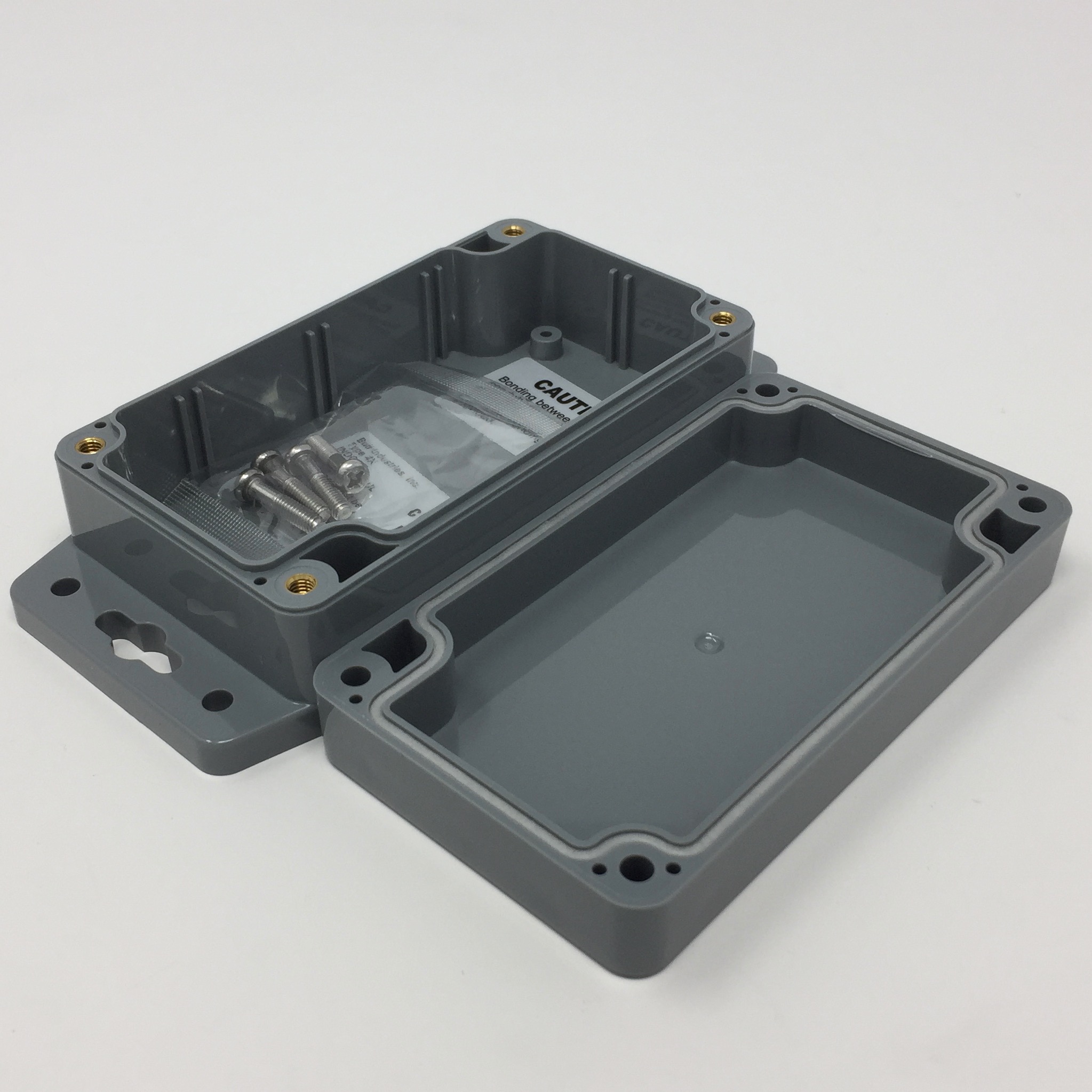 BUD NEMA Polycarbonate 2.28 x 2.04 x 1.18 Inch Internal box with Dark gray ABS body/cover. Indoor Use. and Style 2 & 3 Mounting Bracket
