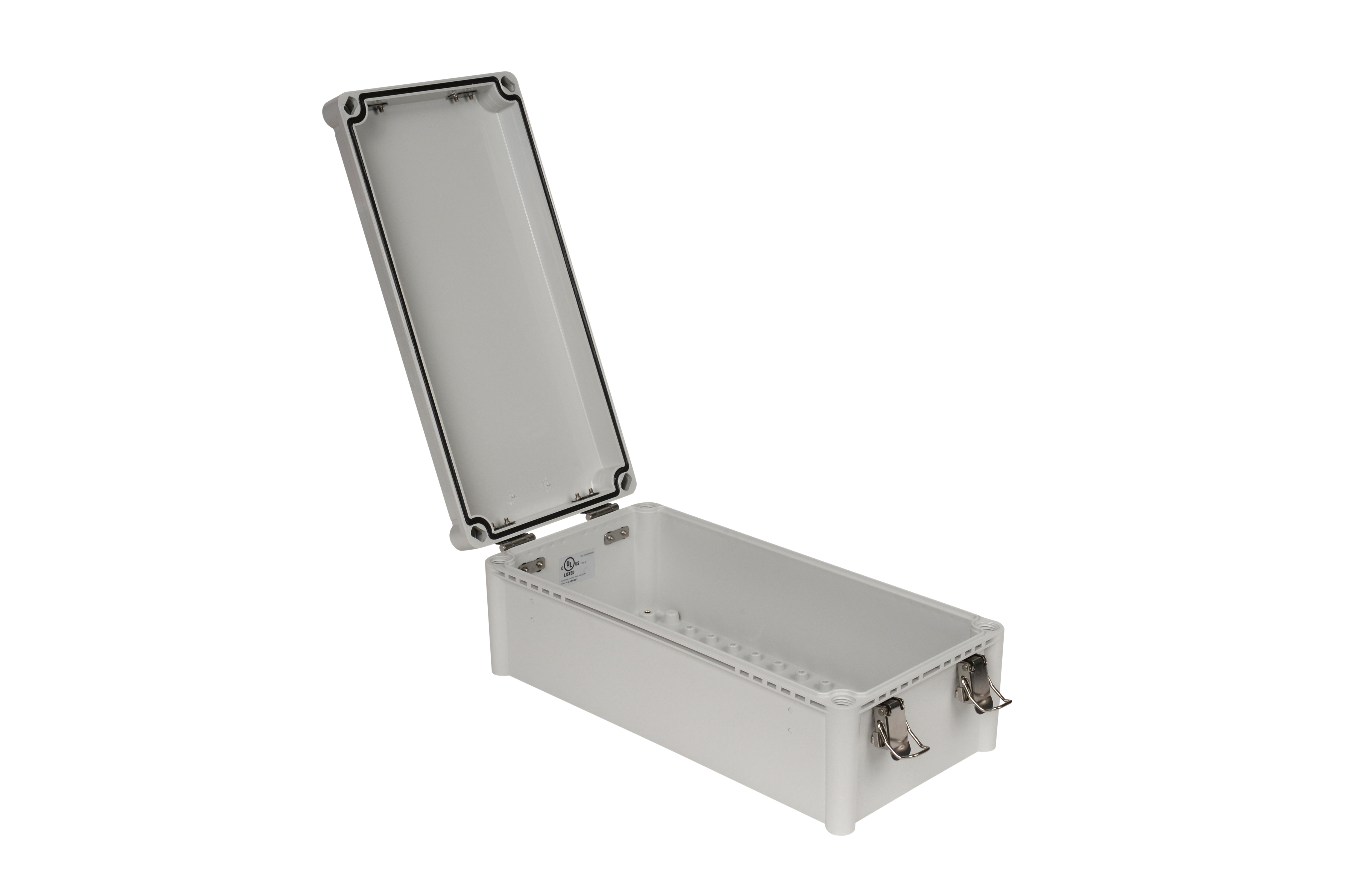 PTH-22448 BUD | PTH | Enclosures Factory Lead Time: TBD RoHs Compliant BUD PTH-22448 PC 10% glass fiber Plastic Box metal latch IP66 (14.96 X 7.48 X 5.12) Gray Cover $55.10 Quantity Min: 1 Mult: 1