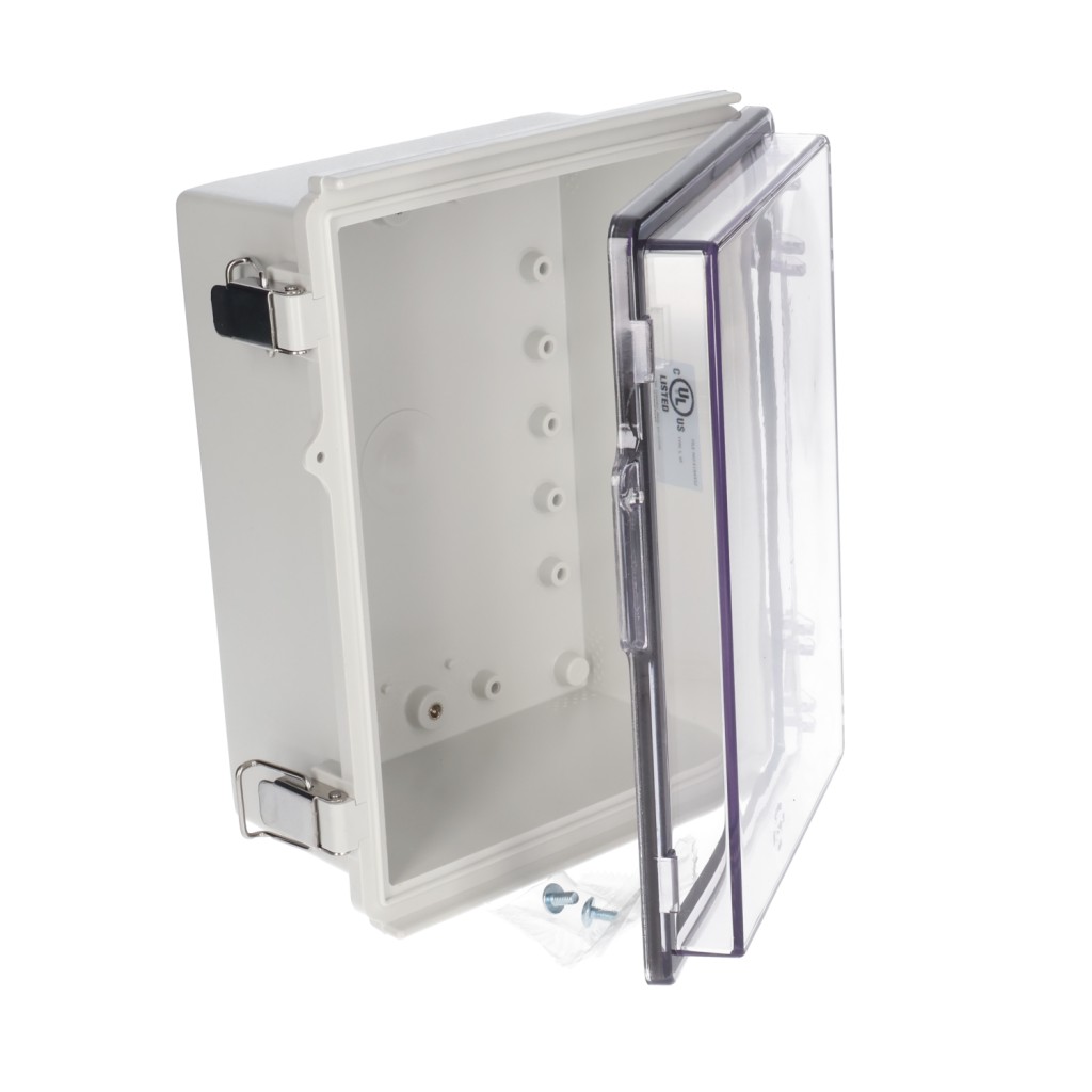 PTQ-11048-C BUD | PTQ | Enclosures Total Stock: 21 Factory Lead Time: TBD RoHs Compliant BUD PC+10% Fiberglass Box with Stainless Steel Latch and Clear Cover (8.3 X 6.3 X 3.9 In) Item Number : PTQ-11048-C $25.30 Quantity Min: 1 Mult: 1