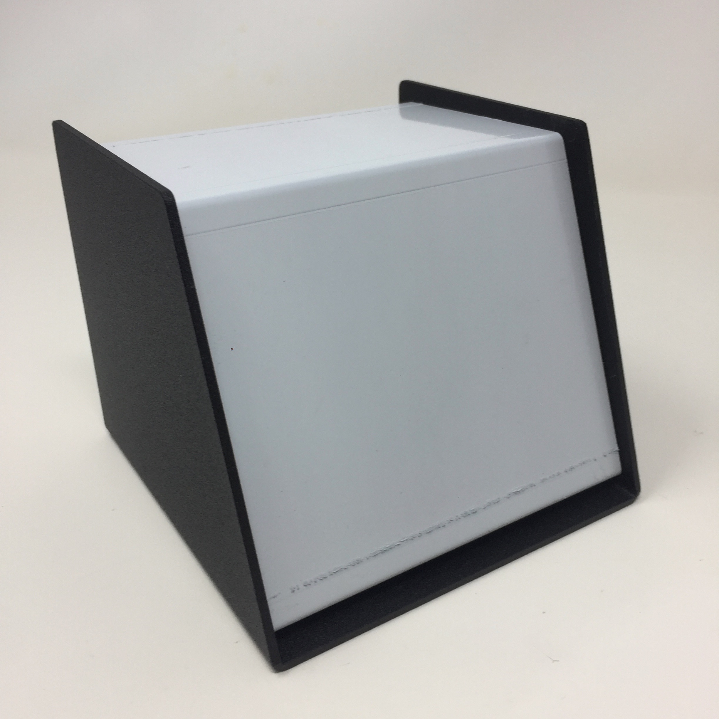 SC-12100 BUD | BUD-HW | Enclosures Factory Lead Time: TBD RoHs Compliant BUD Sloped Metal Electronics Box (4.3 X 4.9 X 5 In) Item Number : SC-12100 $36.40 Quantity Min: 1 Mult: 1