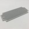 Unique hole grid allows electrical and/or electronic devices to be mounted to panel as a subassembly without punching or drilling holes.