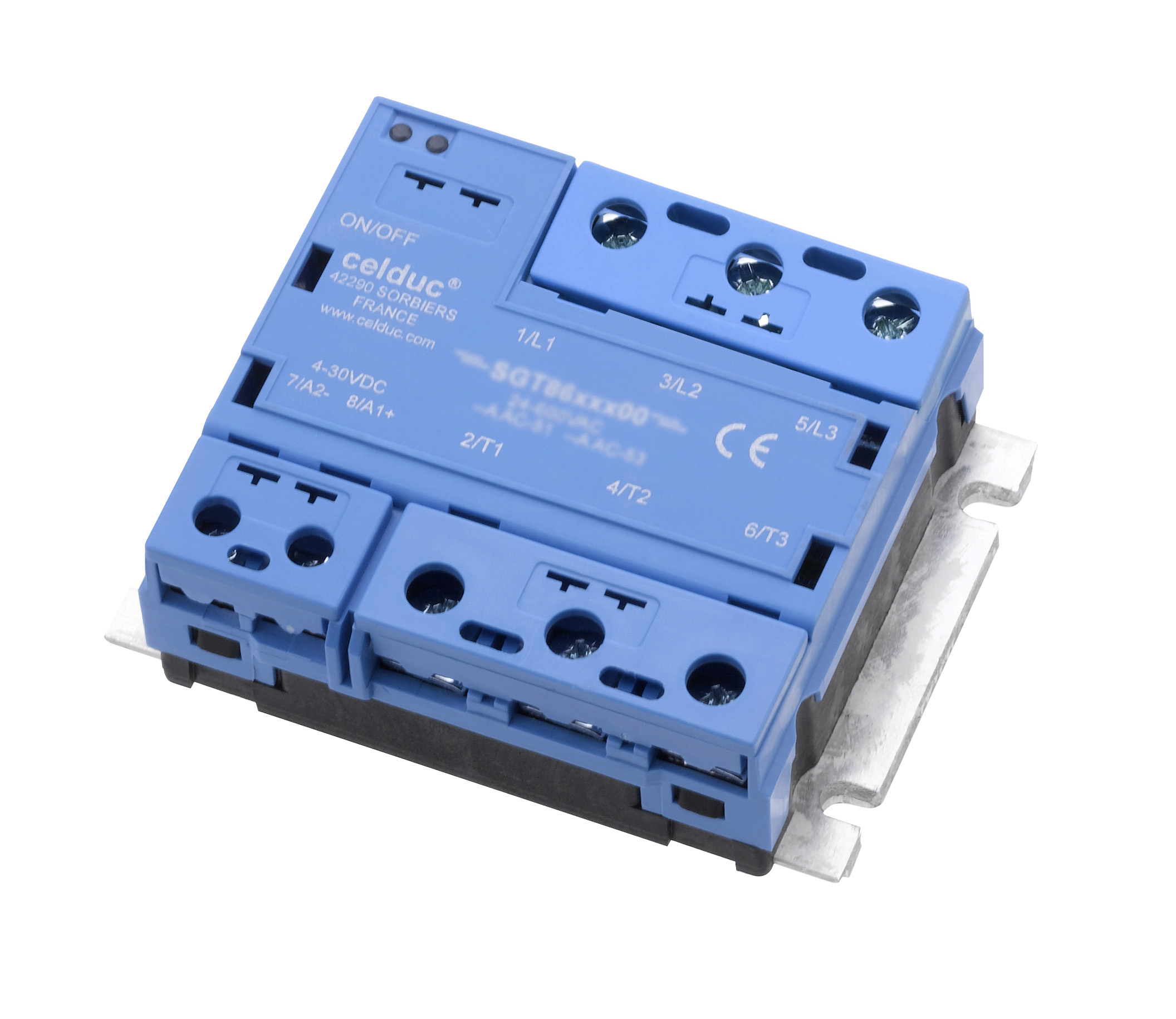 ZC THREE PHASE SSR 3X75A/24-520VAC/CTRL 24-255VAC/DC Configured with screw Terminals and Normally Open Contacts and Screw Housing with 24VDC - 255VDC @ Max . Celduc Part Number SGT8678500