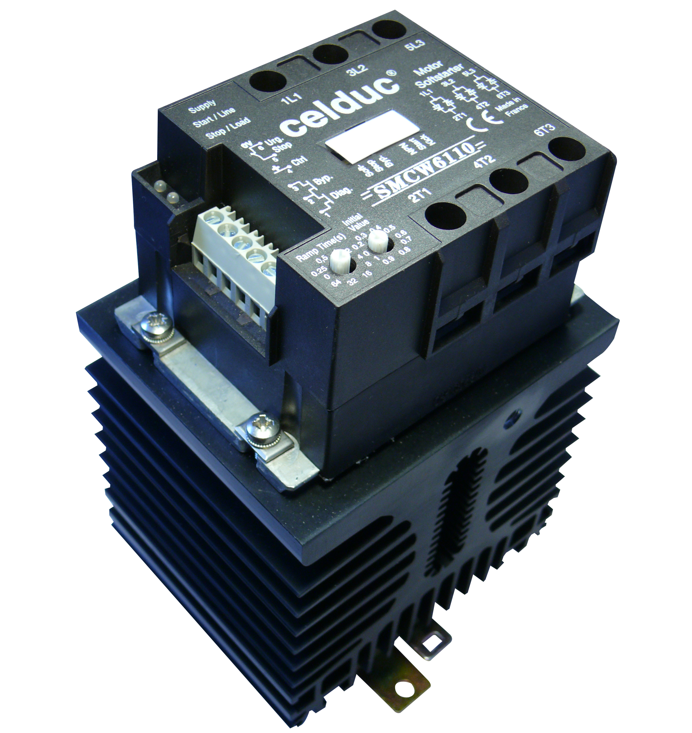 SOFT-STARTER 3PH.11KW/200-480V Configured with screw Terminals and Normally Open Contacts and DIN Rail Housing. Celduc Part Number SMCW6110