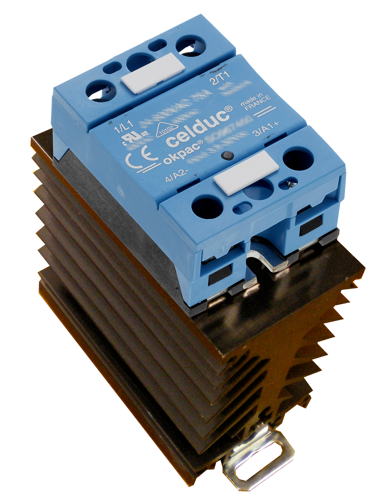 SO885960 SSR Mounted on WF151200 Configured with screw Terminals and Normally Open Contacts and Hockey Puck Housing with 20VAC/18VDC - 265VAC/240VDC @ 10mA Max . Celduc Part Number SO885960-WF151