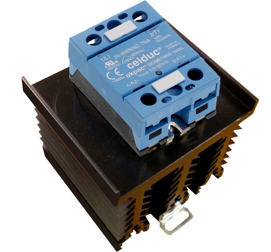 SO887940 SSR Mounted on WF108110 Configured with screw Terminals and Normally Open Contacts and Hockey Puck Housing with 20VAC/18VDC - 265VAC/240VDC @ 10mA Max . Celduc Part Number SO887940-WF108