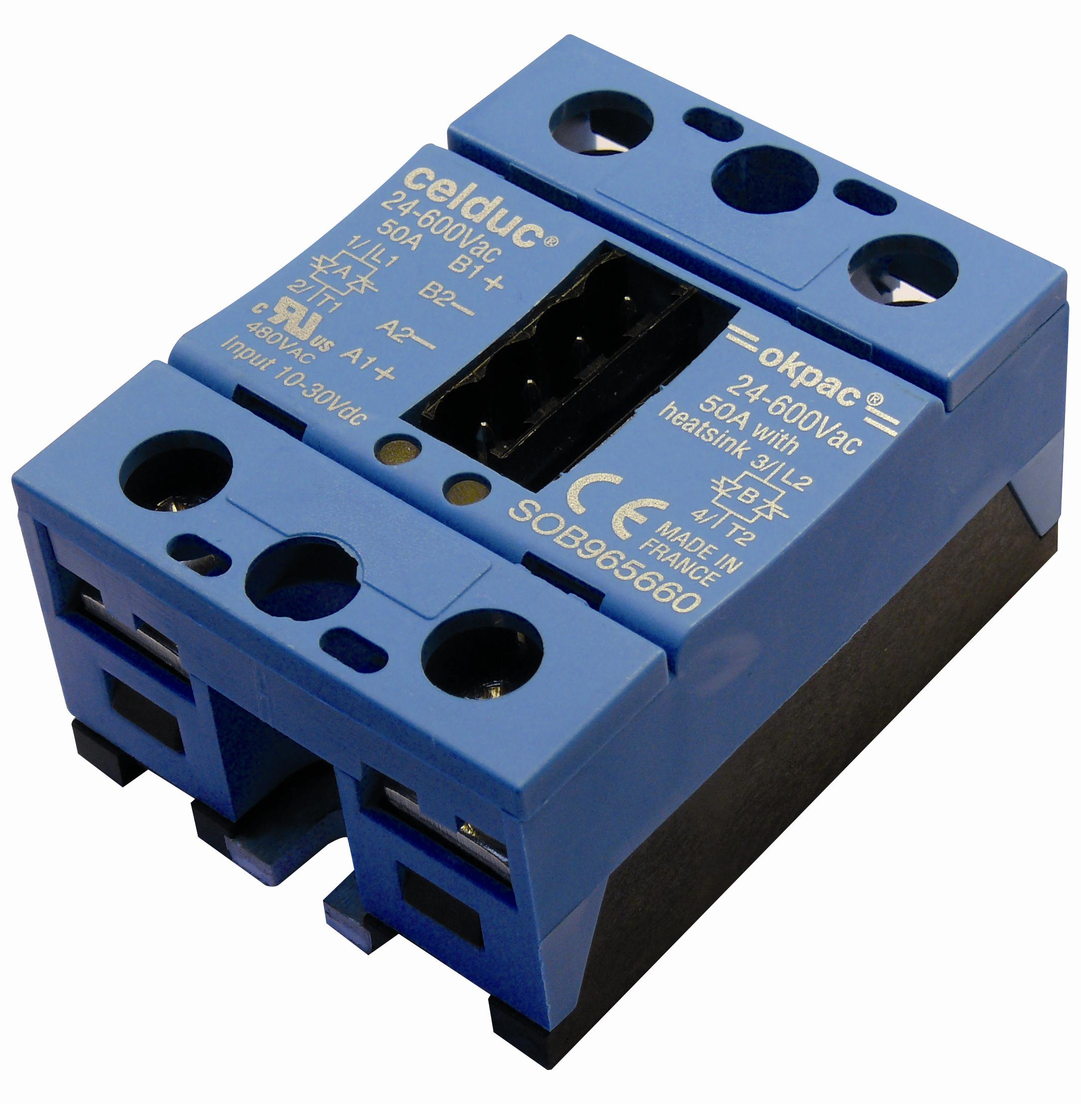 SSR 2X50A/400VAC/2 CTRL 10-30VDC/VDR/THERMAL PAD Configured with screw Terminals and Normally Open Contacts and Hockey Puck Housing with 10VDC - 30VDC @ 24mA Max . Celduc Part Number SOB965670-TH