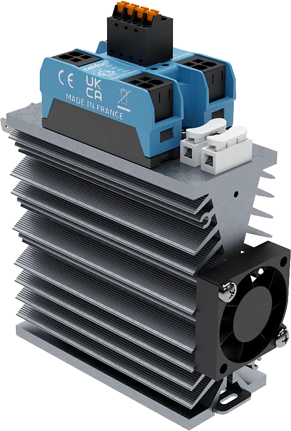 SSR PUSH IN CONTACTORS 2X41A/24-600VAC/TVS/2 CTRL 10-30VDC/LED Configured with pushin Terminals and Normally Open Contacts and Hockey Puck Housing with 10VDC - 30VDC @ 24mA Max . Celduc Part Number SOBR965640-HE-WFF05