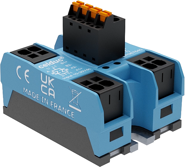 SSR PUSH IN 2X41A/24-600VAC/TVS/2 CTRL 10-30VDC/LED Configured with pushin Terminals and Normally Open Contacts and Hockey Puck Housing with 10VDC - 30VDC @ 24mA Max . Celduc Part Number SOBR967640