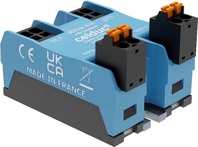 SSR PUSH IN 35A/12-280VAC/TVS/CTRL 3-32VDC/LED/ICREGUL Configured with pushin Terminals and Normally Open Contacts and Hockey Puck Housing with 3-32VDC @ <13mA Max . Celduc Part Number SOR943440-HE