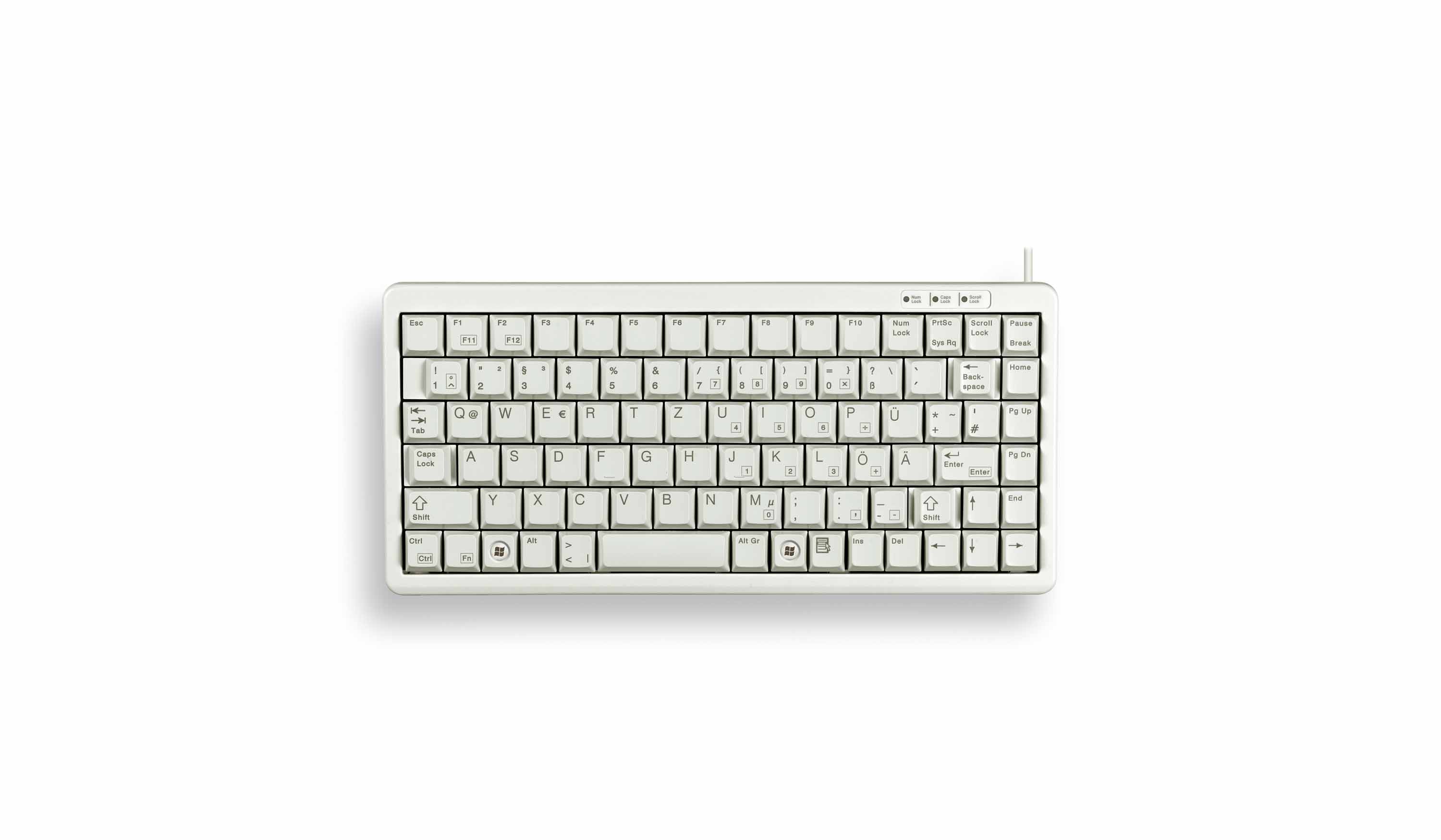 Light Grey, 11(in) ultraslim keyboard. US space reduced 83 position key layout without 'Windows keys'. Includes USB and PS/2 connectors. Mechanical keyswitches with Laser etched keys, TAA Compliant