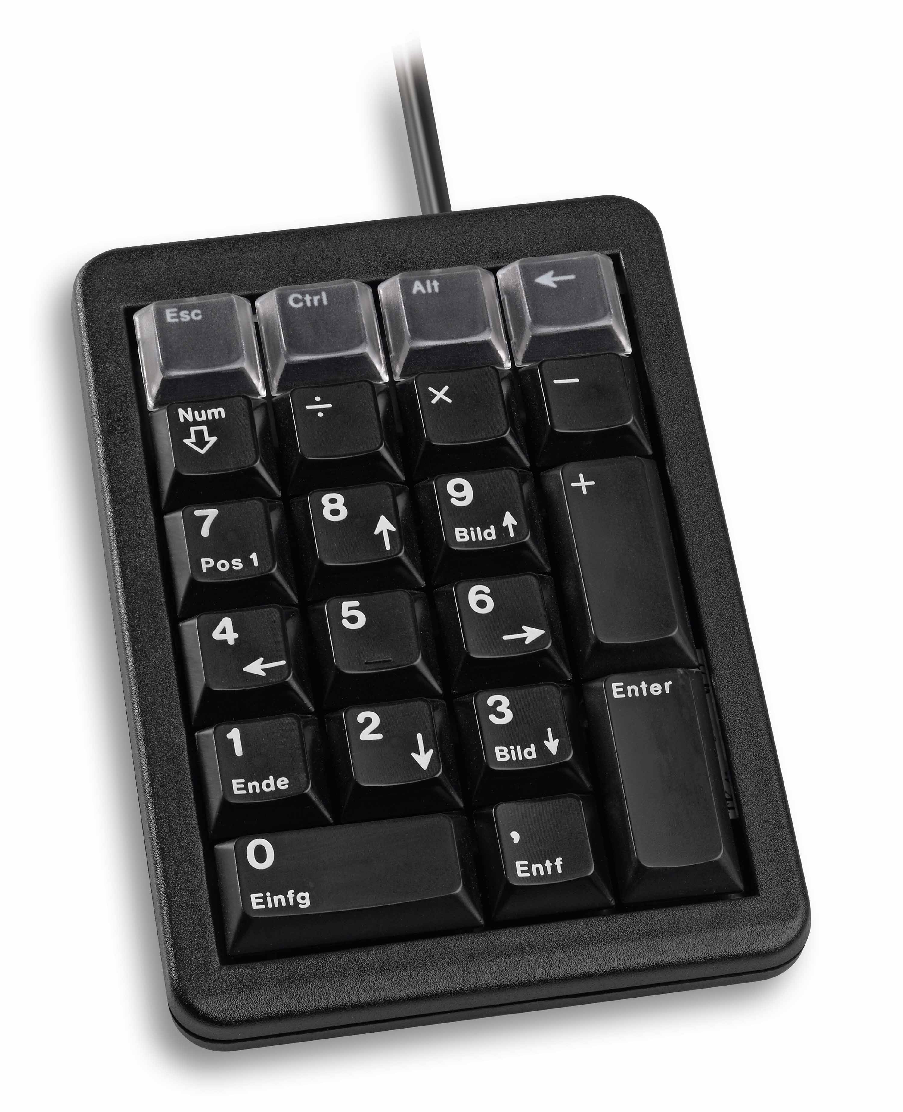 Black, PS/2, 4(in) Ultra slim US 21 position key layout, 20 Programmable, 4 relegendable, PS/2 port for keyboard, Mechanical Keyswitches, Lasered keys, TAA Compliant