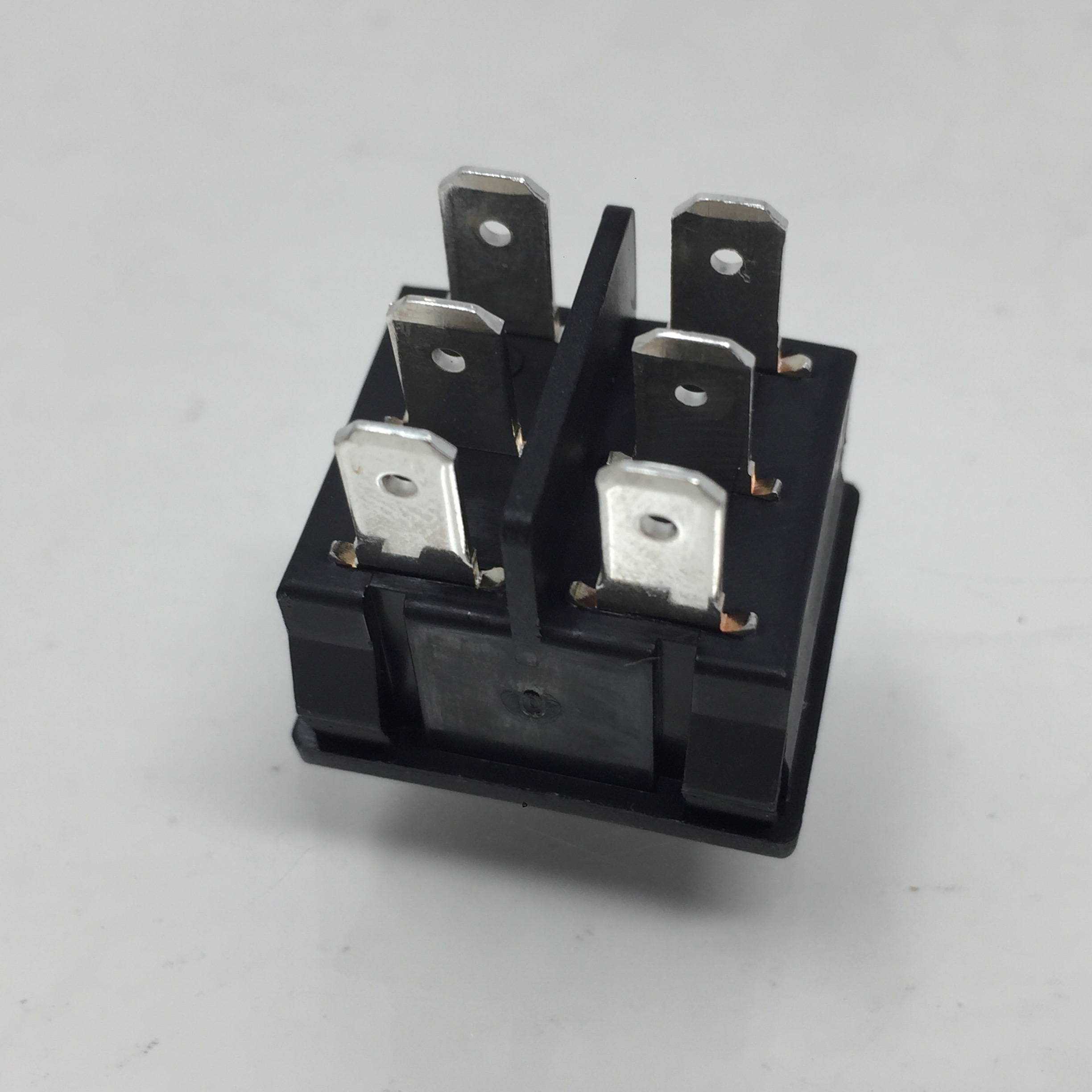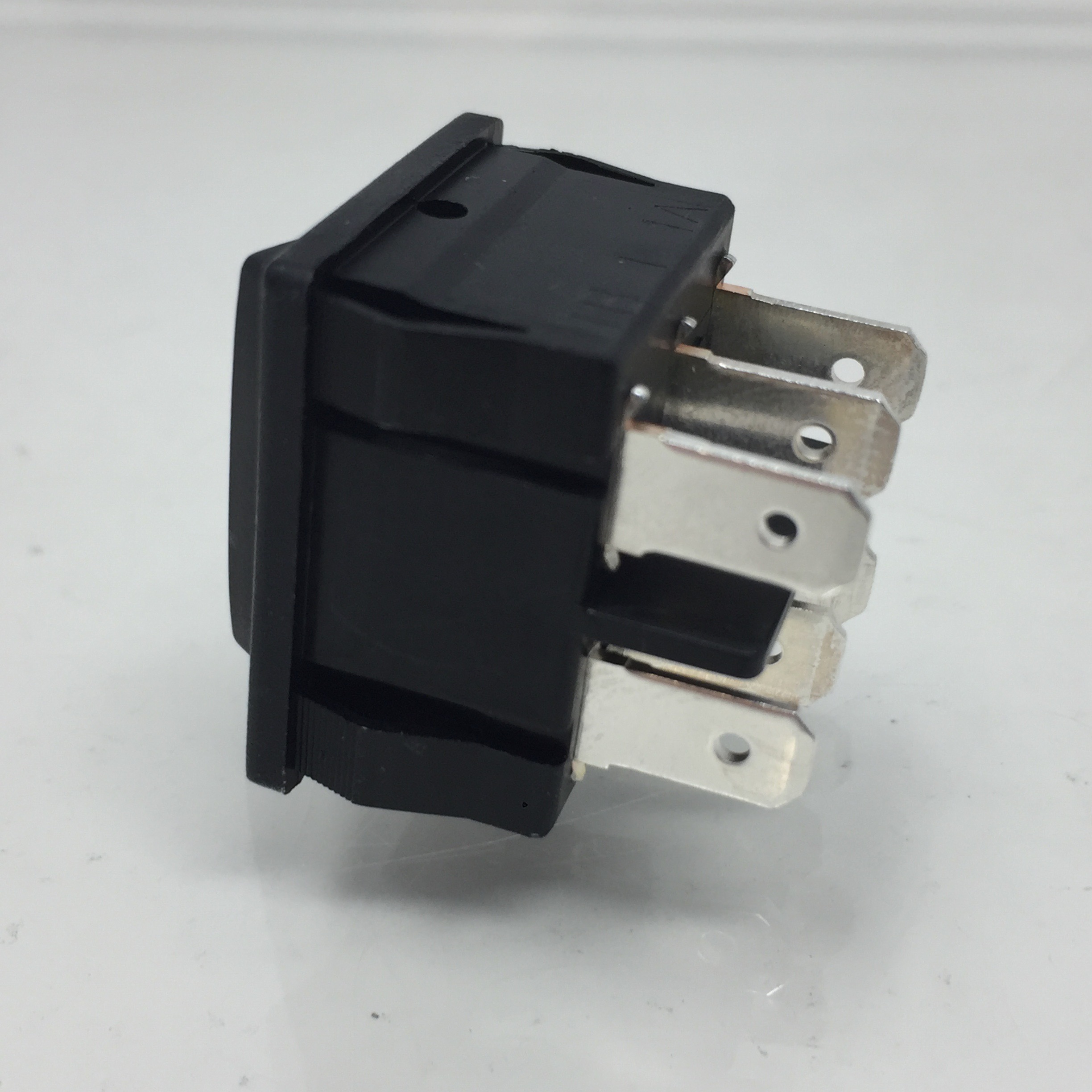 C&K DPDT On-None-ON Power Black Rocker Switch with Quick connect Terminals and Snap-In Black Mounting Actuator Markings ( None ).