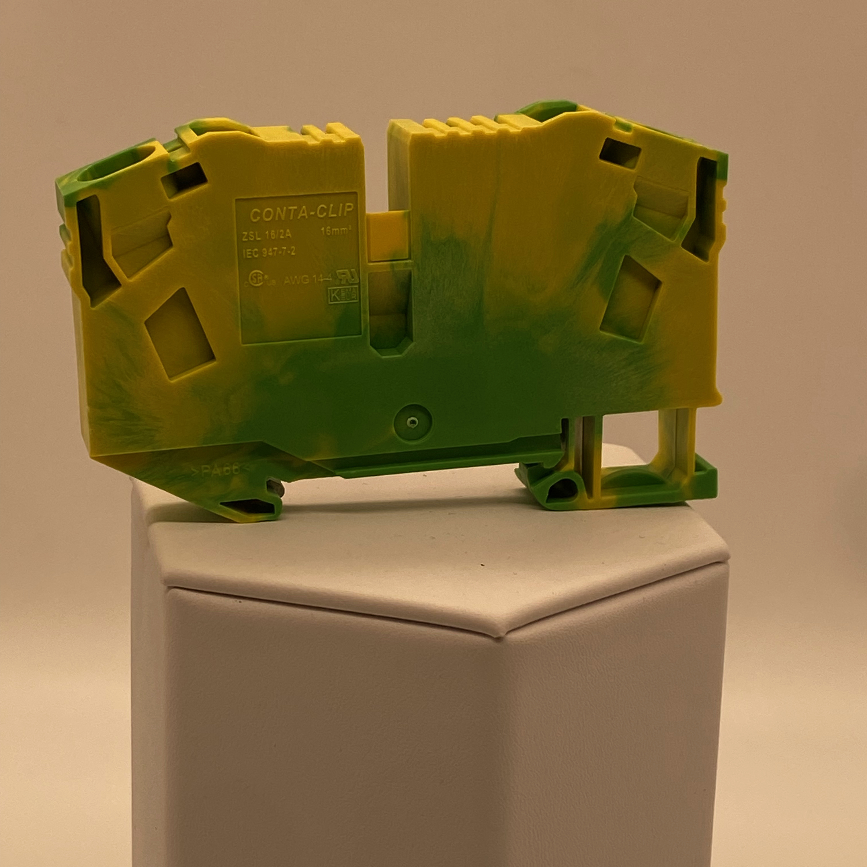 12mm, GrndTerm2SpringClmps; 35MM-DIN; 14-4 AWG;Clr-Grn/Ylw Conta-Clip PN: 3637.2 ZSL16/2A