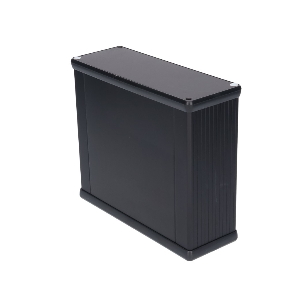 black extruded aluminum enclosure w/ metal end panels 191 X 66 X 160MM ALM EXT BLACK (6.3 x 7.5 x 2.6) Hammond PN 1455U1601BK : UPC [623980563237] Color: Black