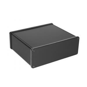 extruded aluminum enclosure w/ plastic closed bezels 191 X 66 X 160MM ALM EXT BLACK (6.3 x 7.5 x 2.6) Hammond PN 1455U1602BK : UPC [623980563251] Color: Black